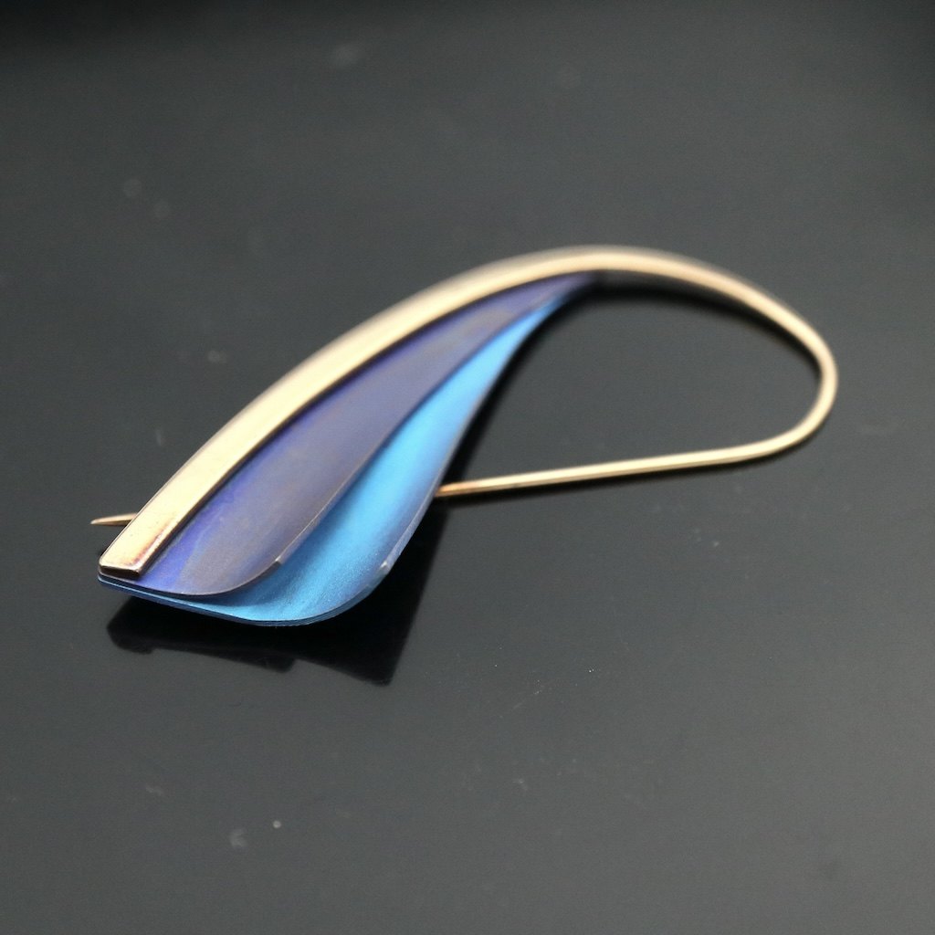 Kirsten Pontoppidan. Broche i18k guld med farveoxideret titanium.