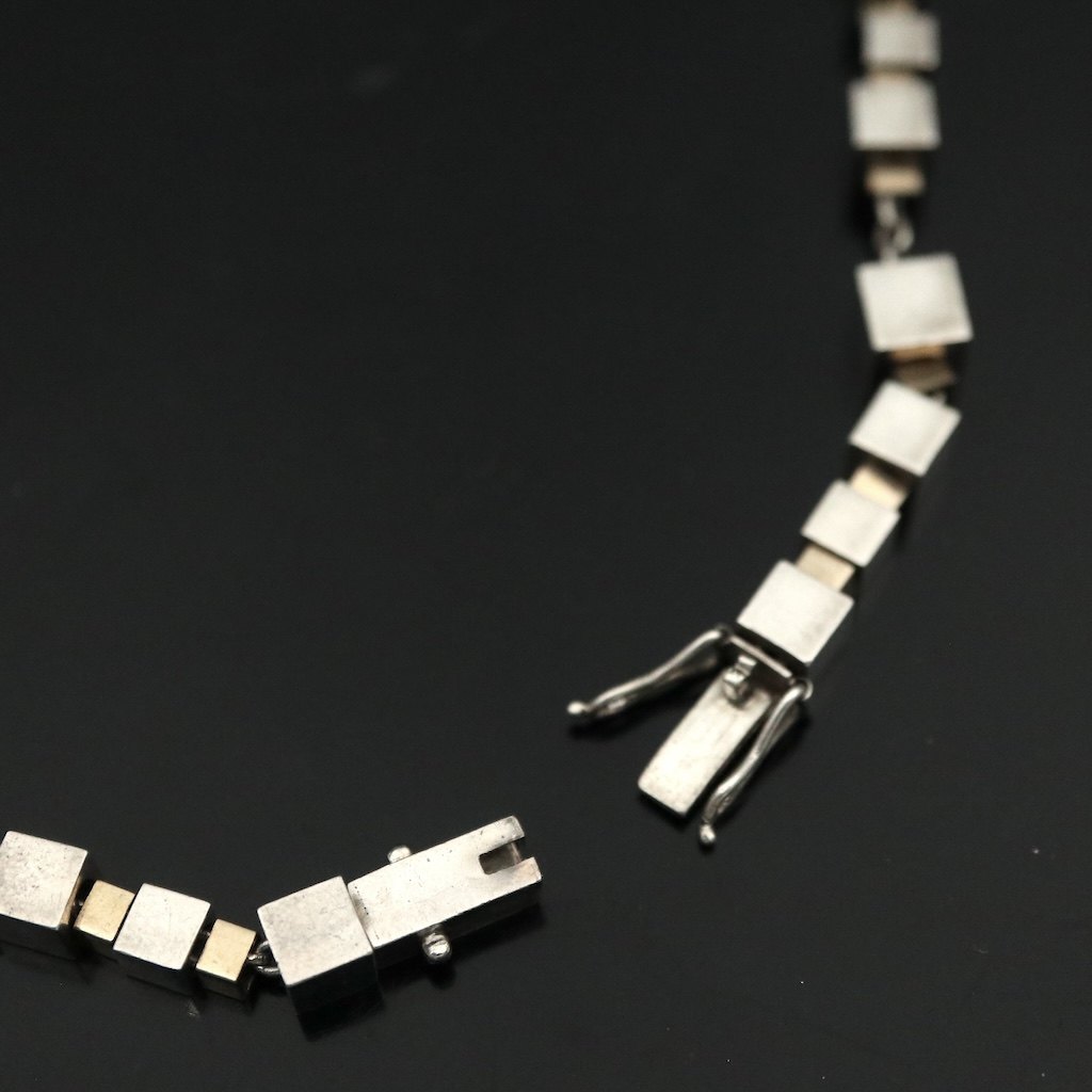 Karen Strand. 'Kubus' Halskæde i sterlingsølv og 18k guld.
