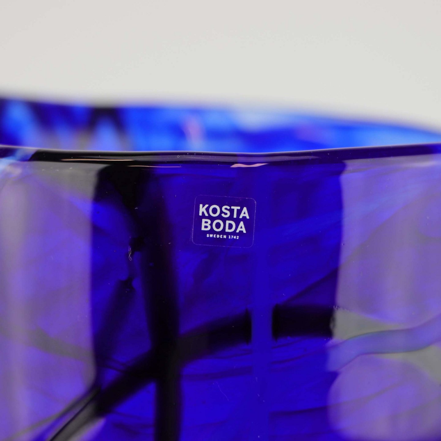 Asymmetrisk vase i glas fra serien Contrast. Vasen er i klart glas med blå og hvide farver