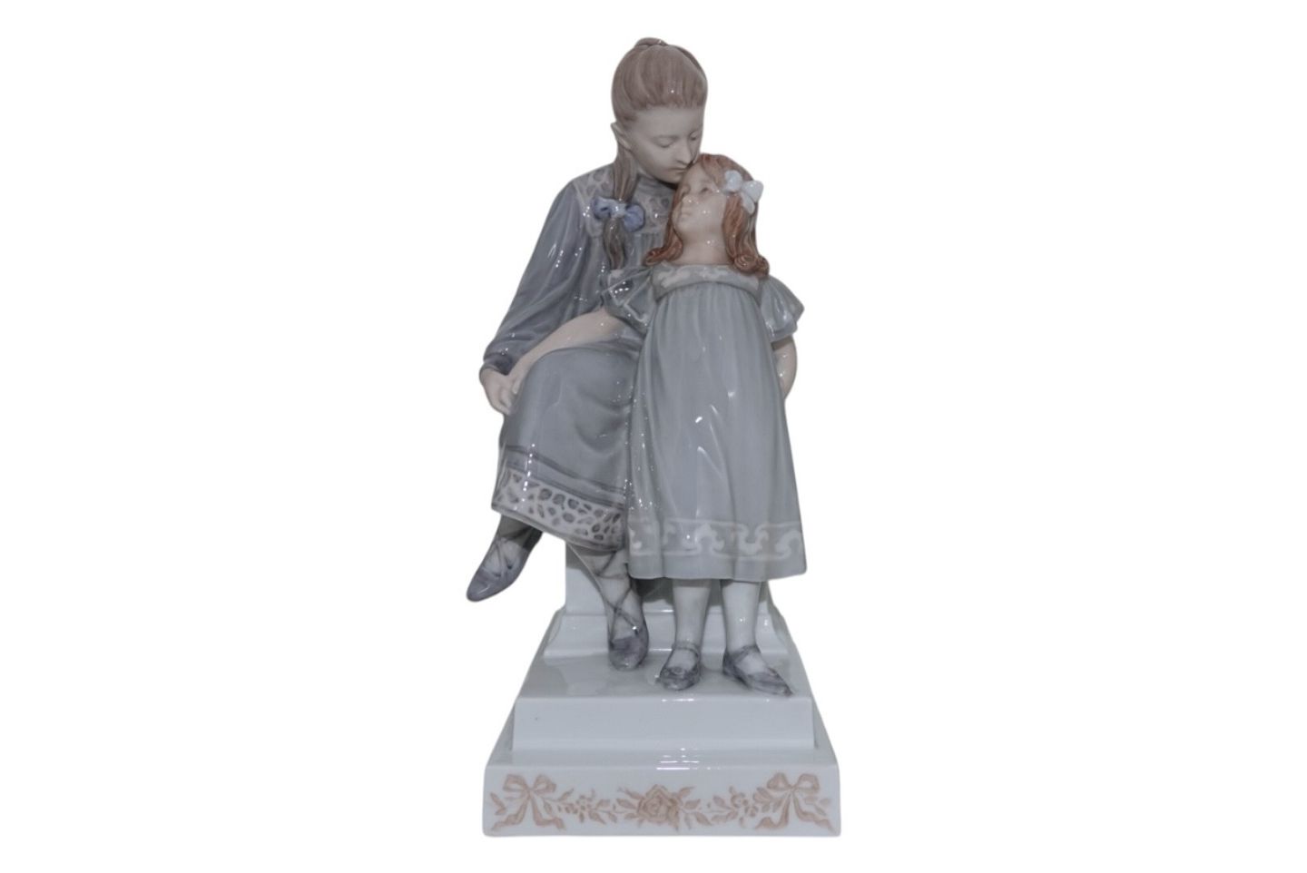 Royal Copenhagen Art Nouveau, sjælden og stor figur af to søstre.