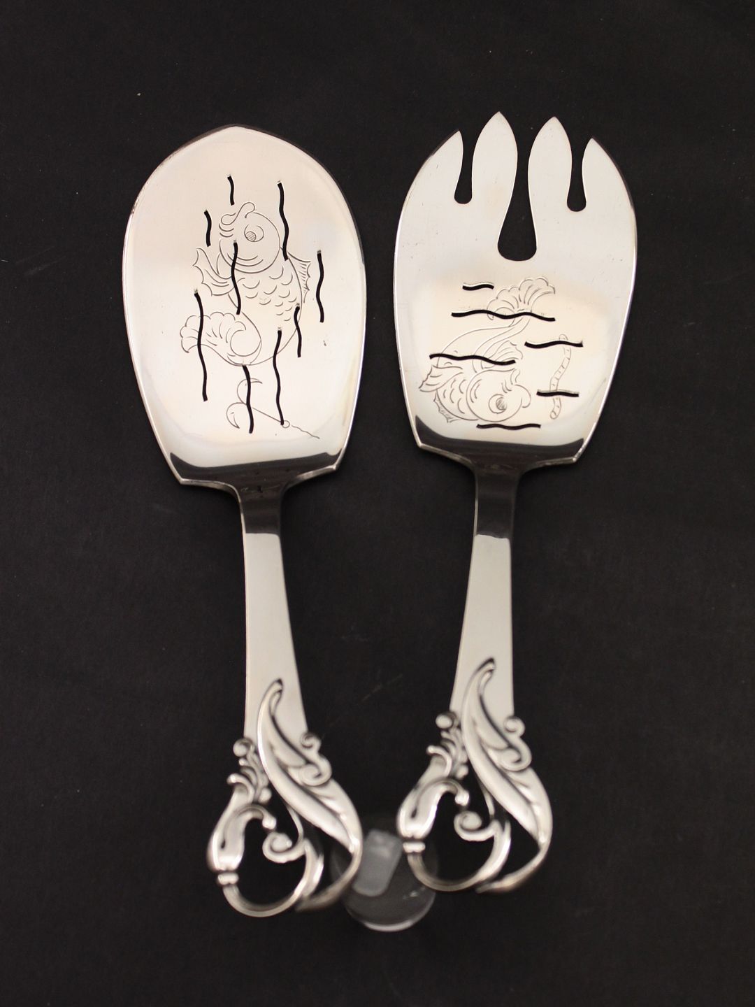 Tretårnet sølv fiske serverings sæt 22,5 cm. emne nr. 610139