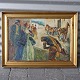 Oliemaleri på lærred i guldmalet træramme med spansk motiv under titlen Don Quixote gæster ridderen af den grønne kappe.