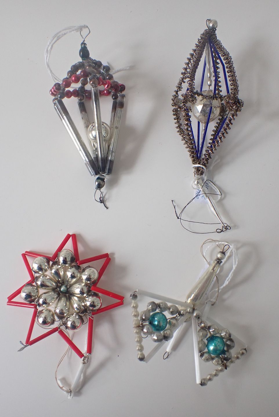 4 stk. sammensatte glasjulepynt fra Tyskland.