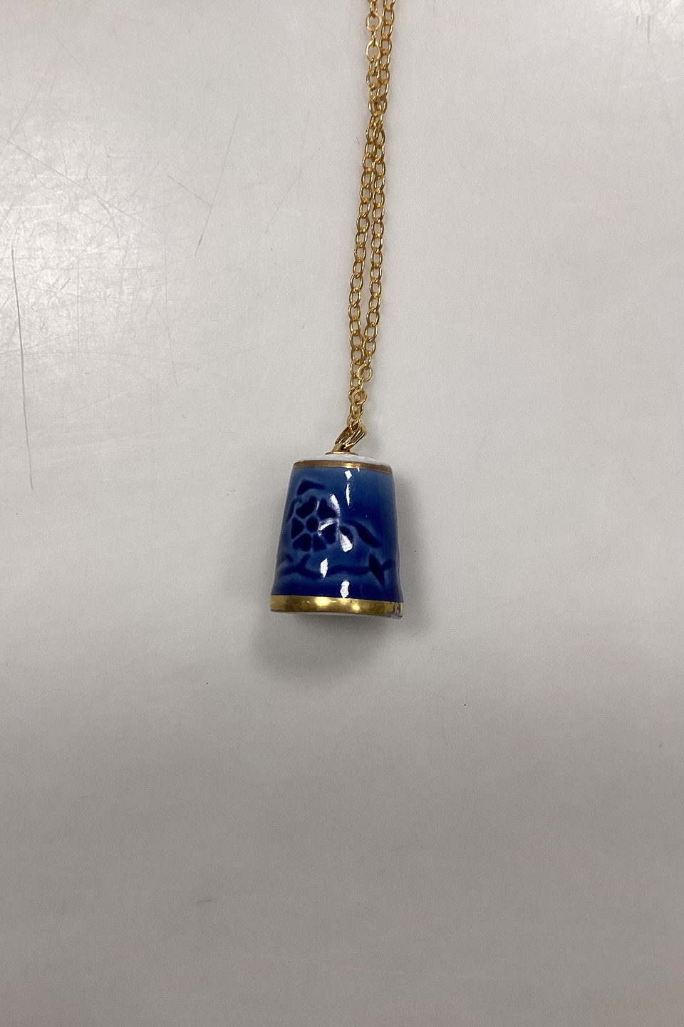 Bing og Grøndahl Halskæde med Fingerbøl No. 9578 fra 1978. Æske medfølger. Har lettere guldslid på kanten bagest, se foto.