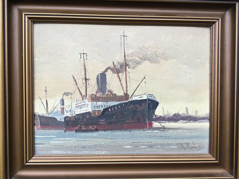 Maleri af Carl Th. Rasmussen - Skibe i havn.