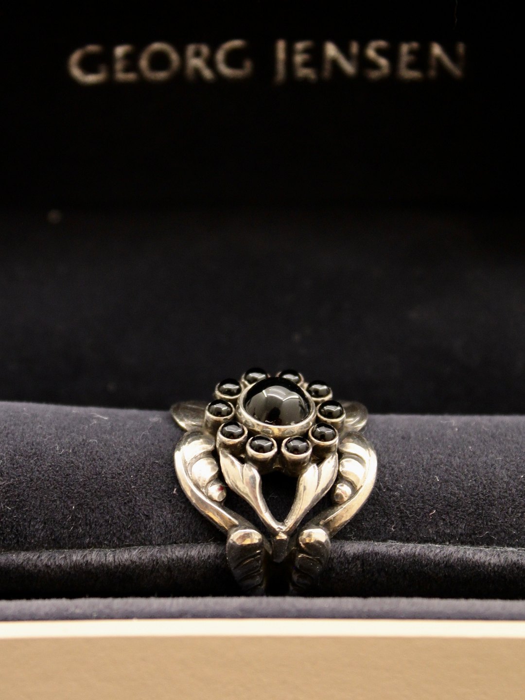 Georg Jensen sterling silver ring size 53 moonlight blossom #10 with black agates as new delivered in original box item no. 614014