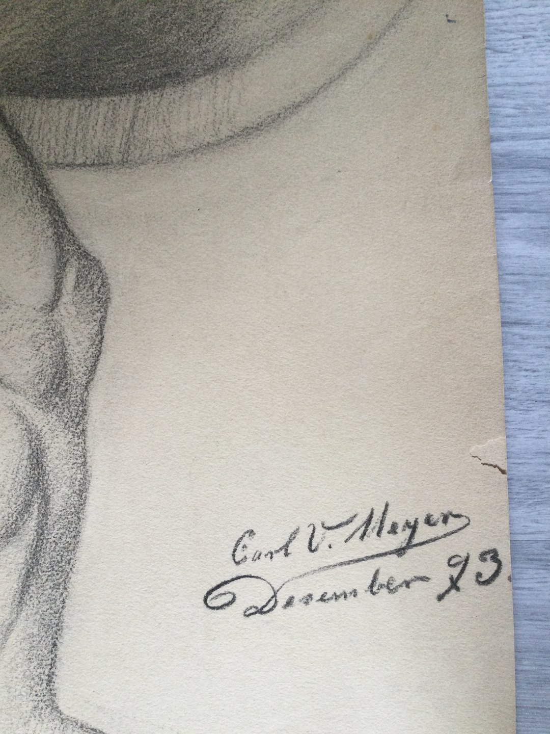 Akademitegning af Carl V. Meyer - Nøgen kriger med skjold 1893.