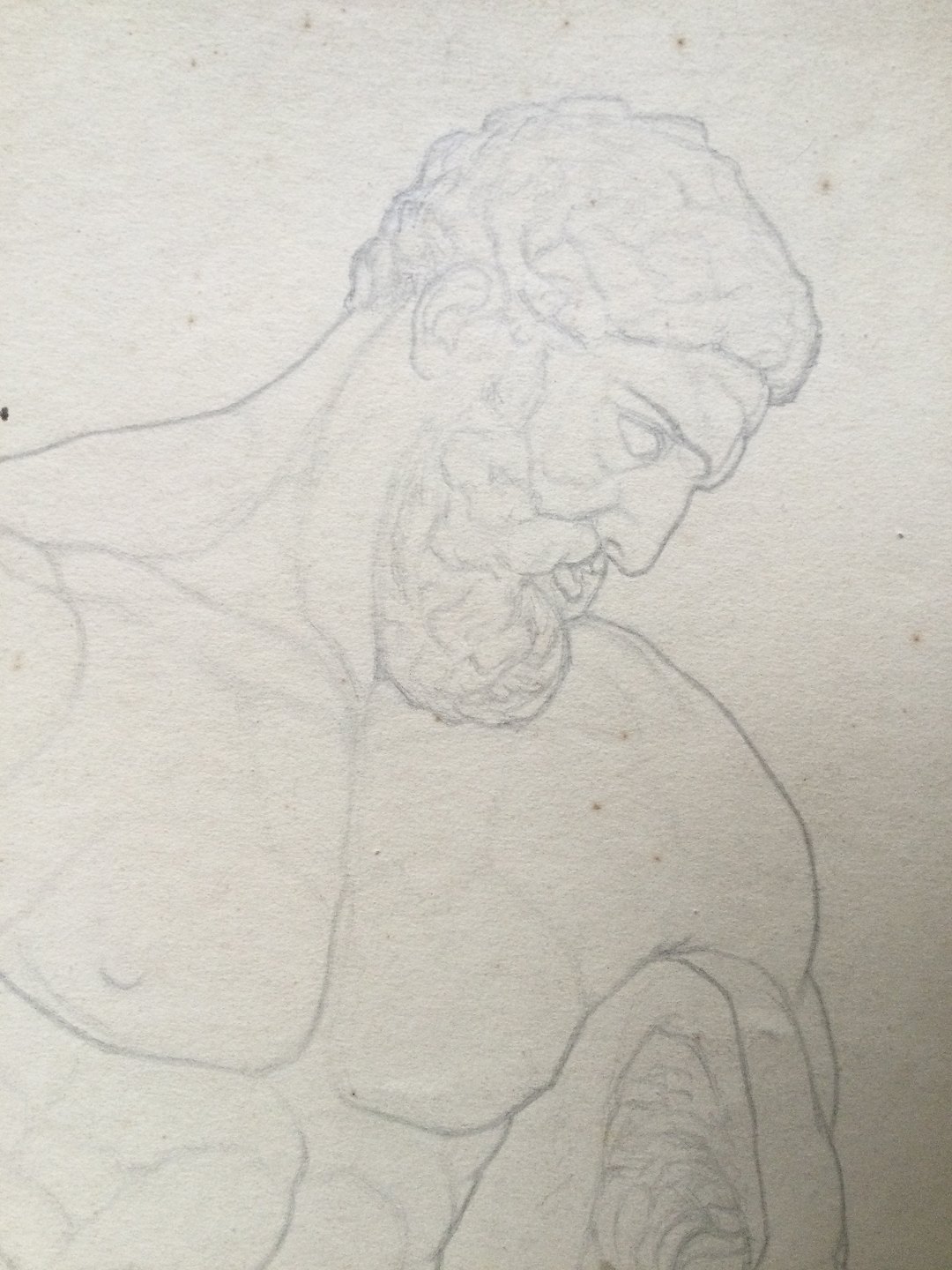 Akademitegning af Carl V. Meyer - Nøgen mand med kølle - Den Farnesiske Herkules 1893.