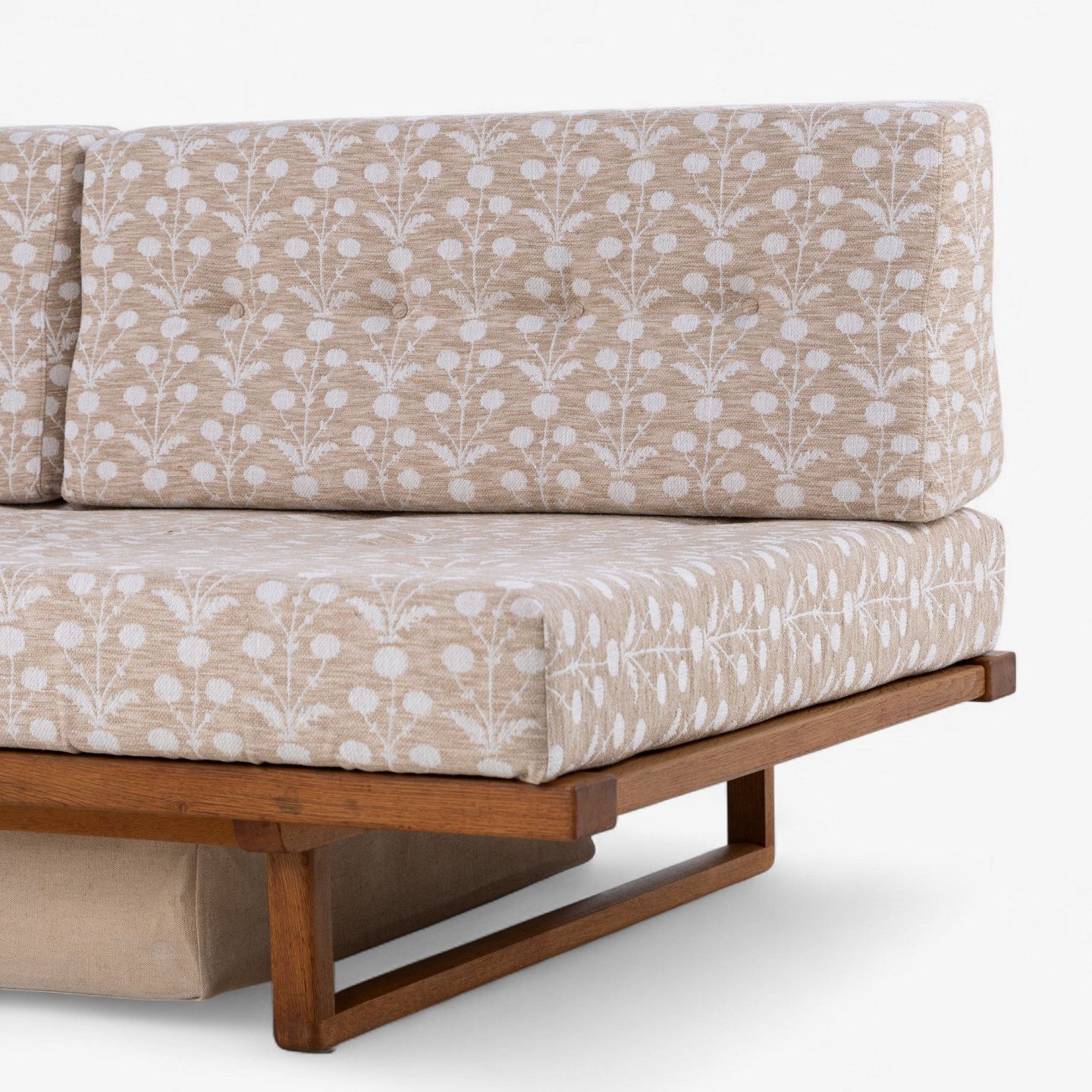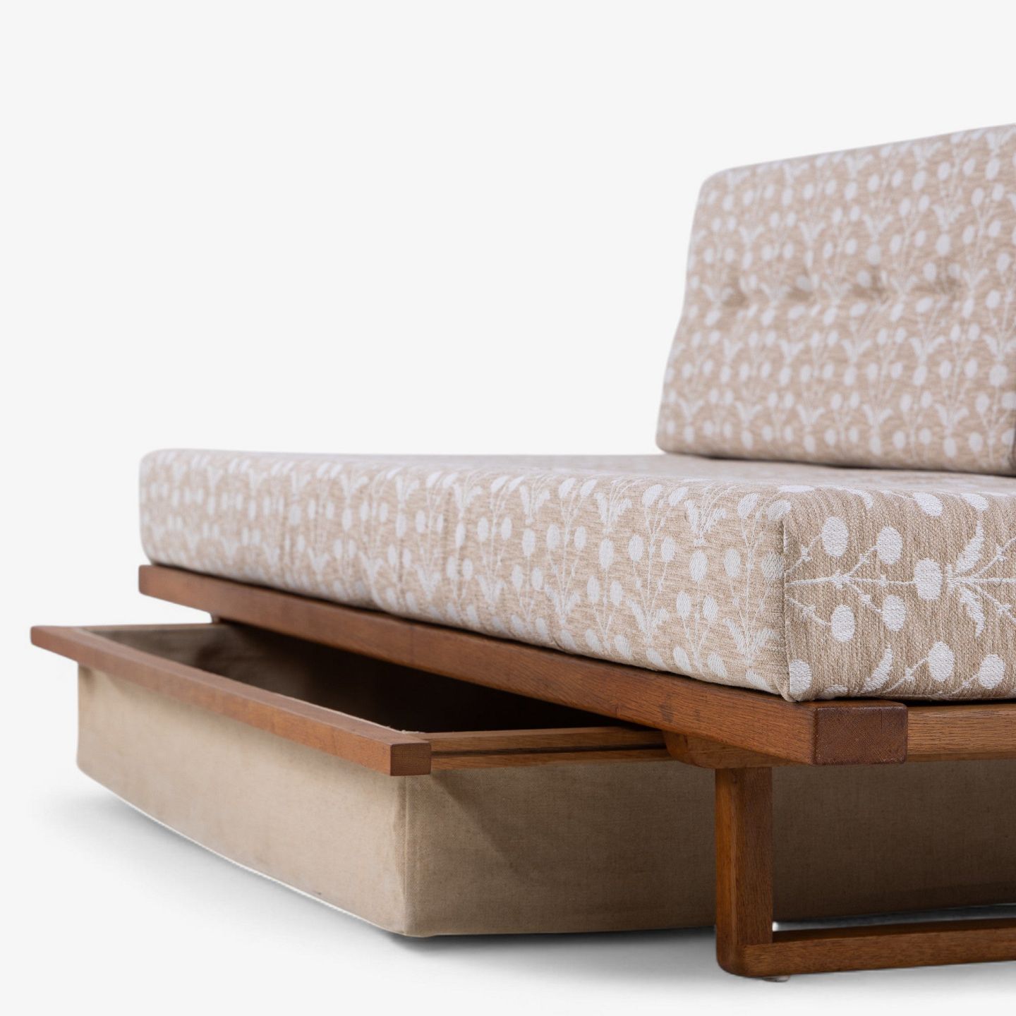 BM 4312 - Daybed i eg med nybetrukkede hynder i 'NIRA'-tekstil (farve: 2) fra Güell Lamadrid med opbevaring.