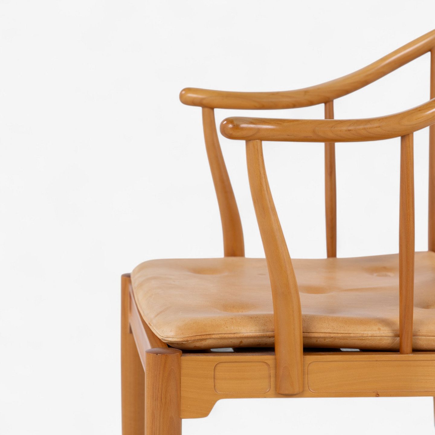 FH 4283 - Kinastol i kirsebær med hynde i patineret naturlæder. Mærket fra producent.