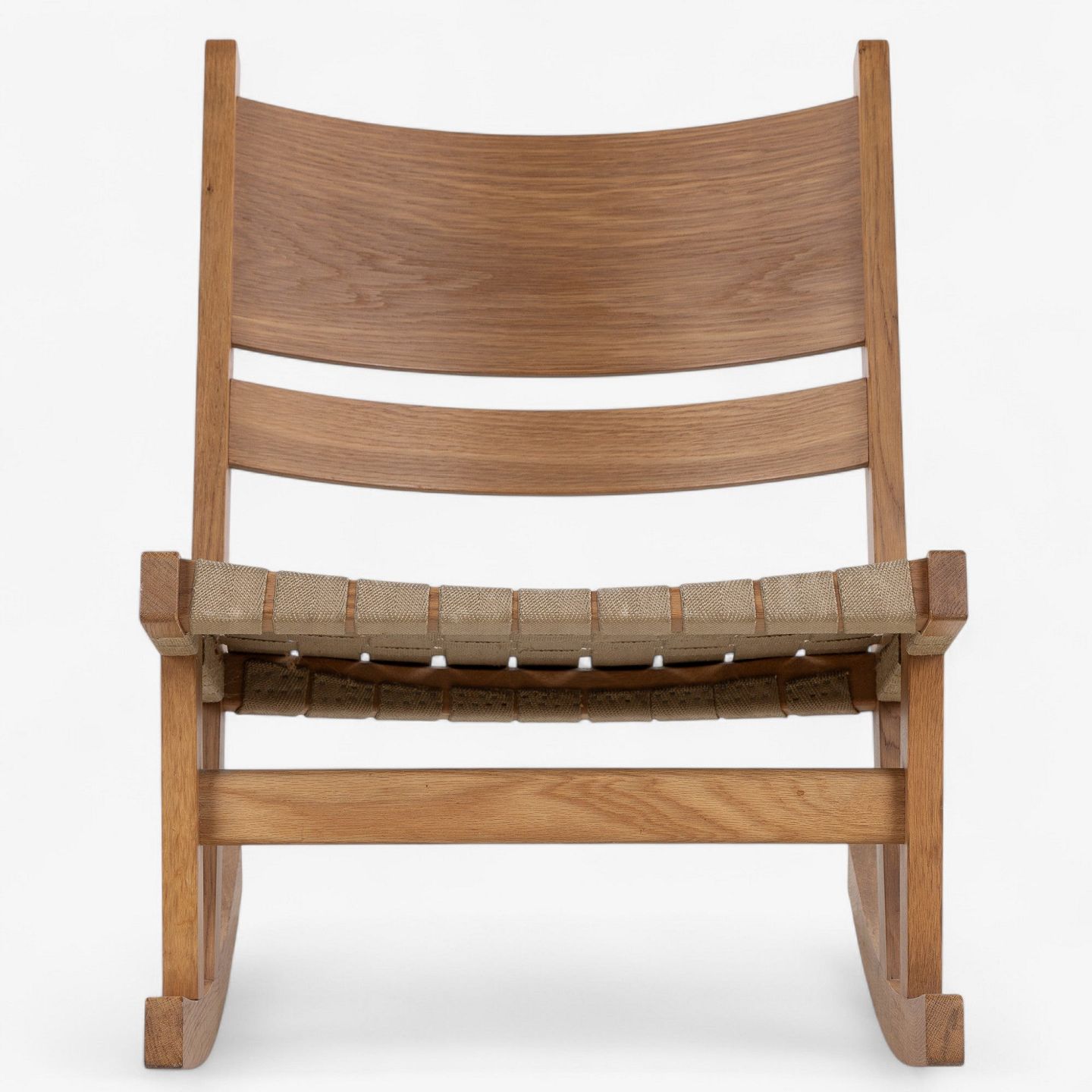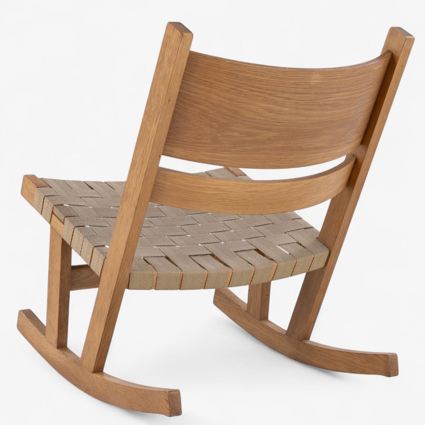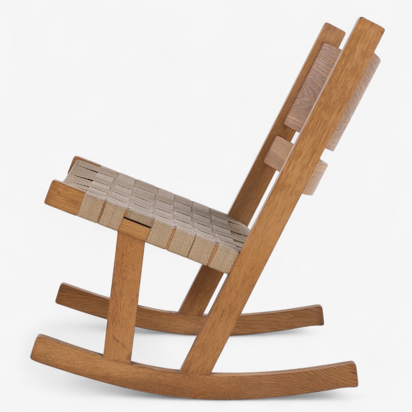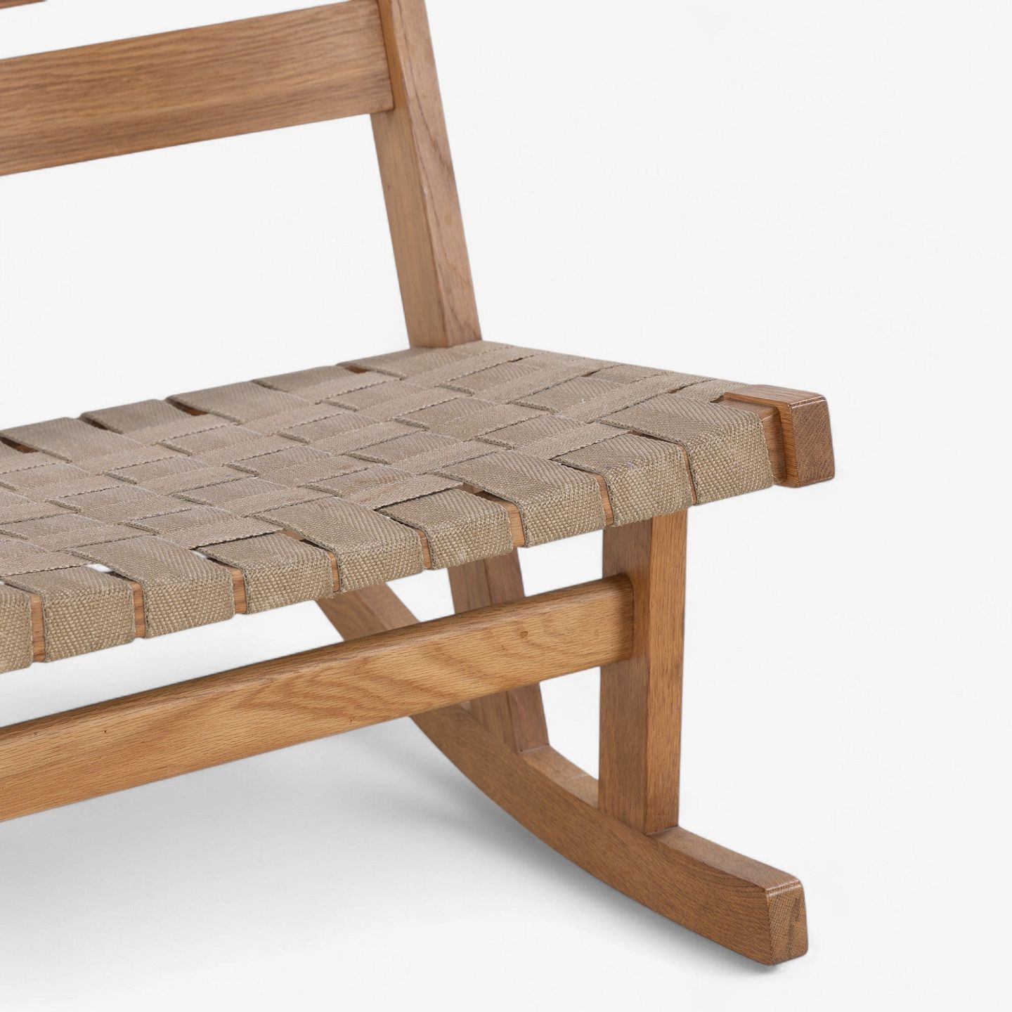 GE 674 - Gyngestol med stel i eg og sæde med patinerede gjorde.