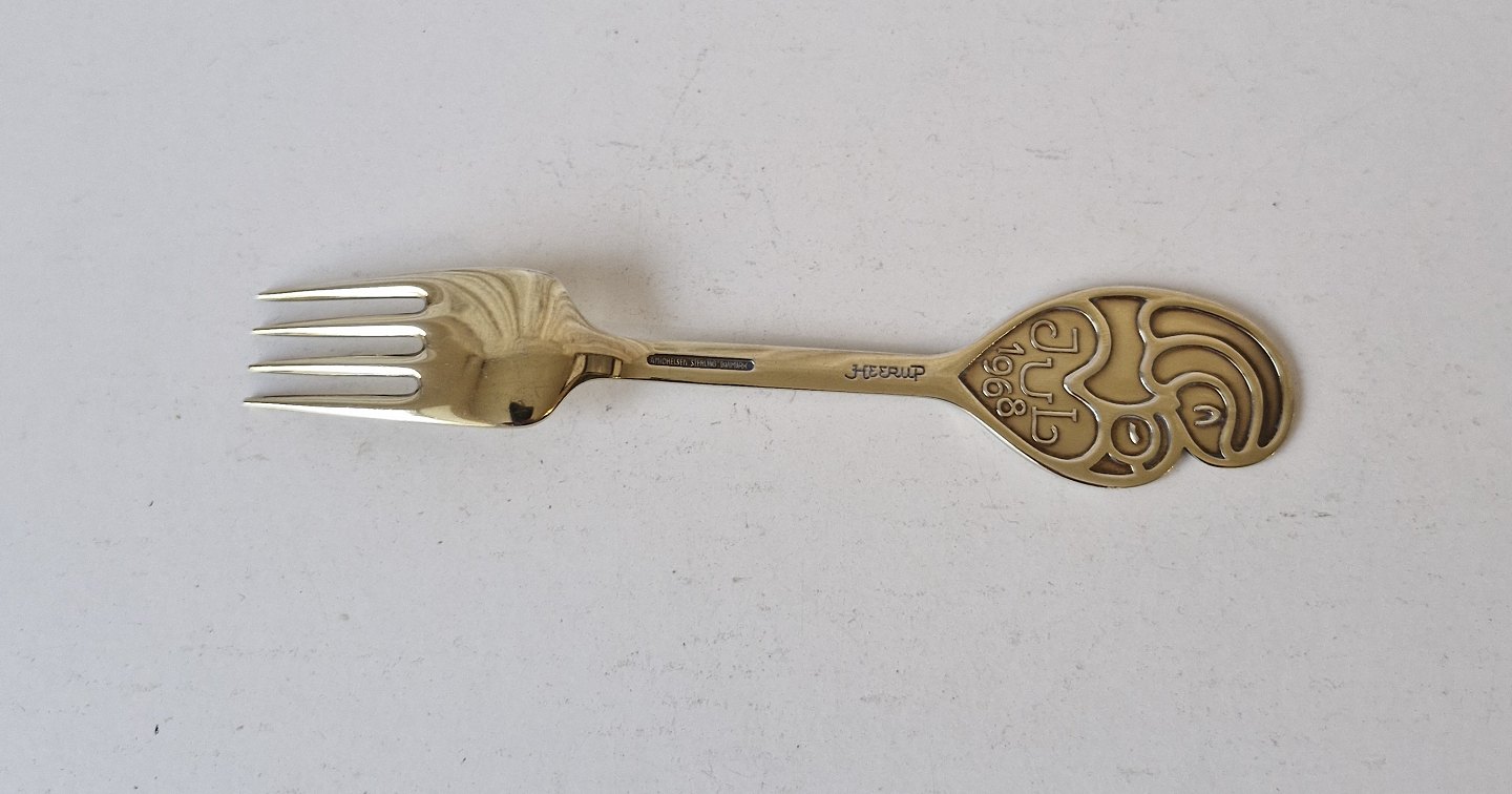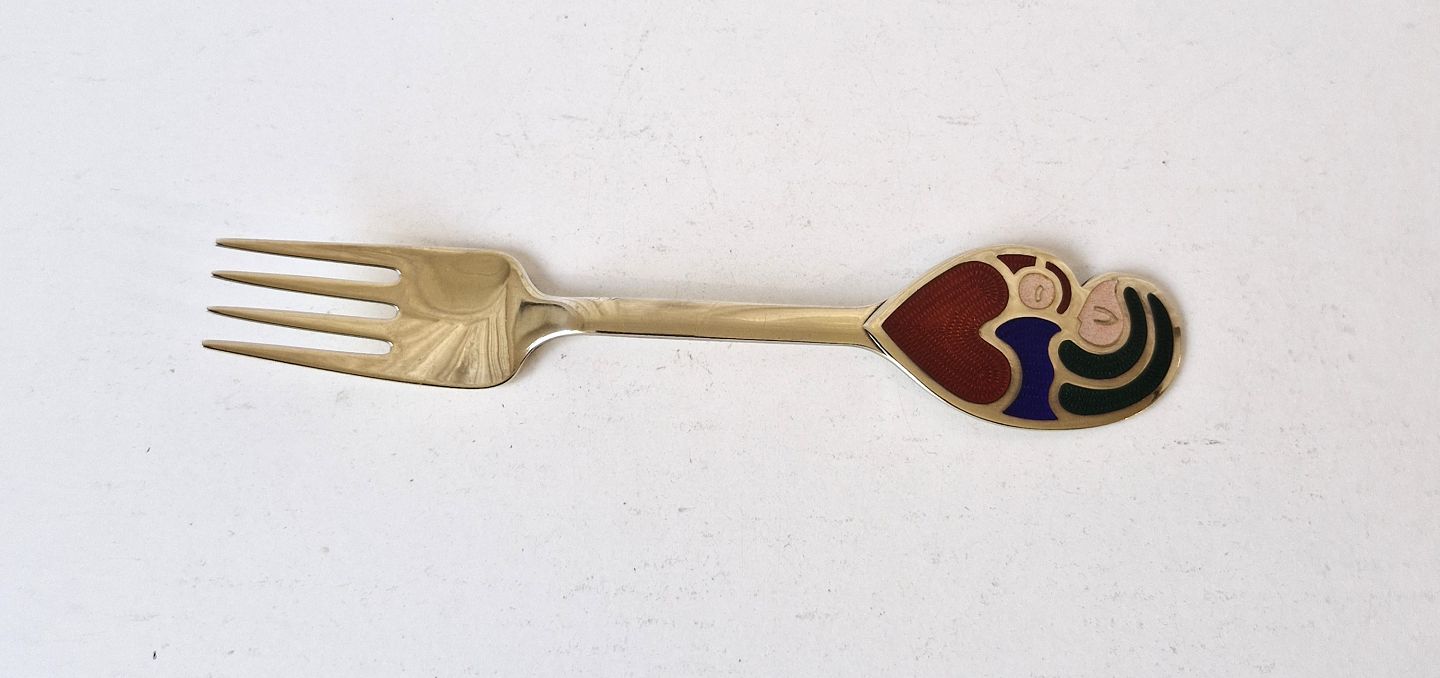 A.Michelsen Christmas fork in gold-plated sterling silver with enamel 1968