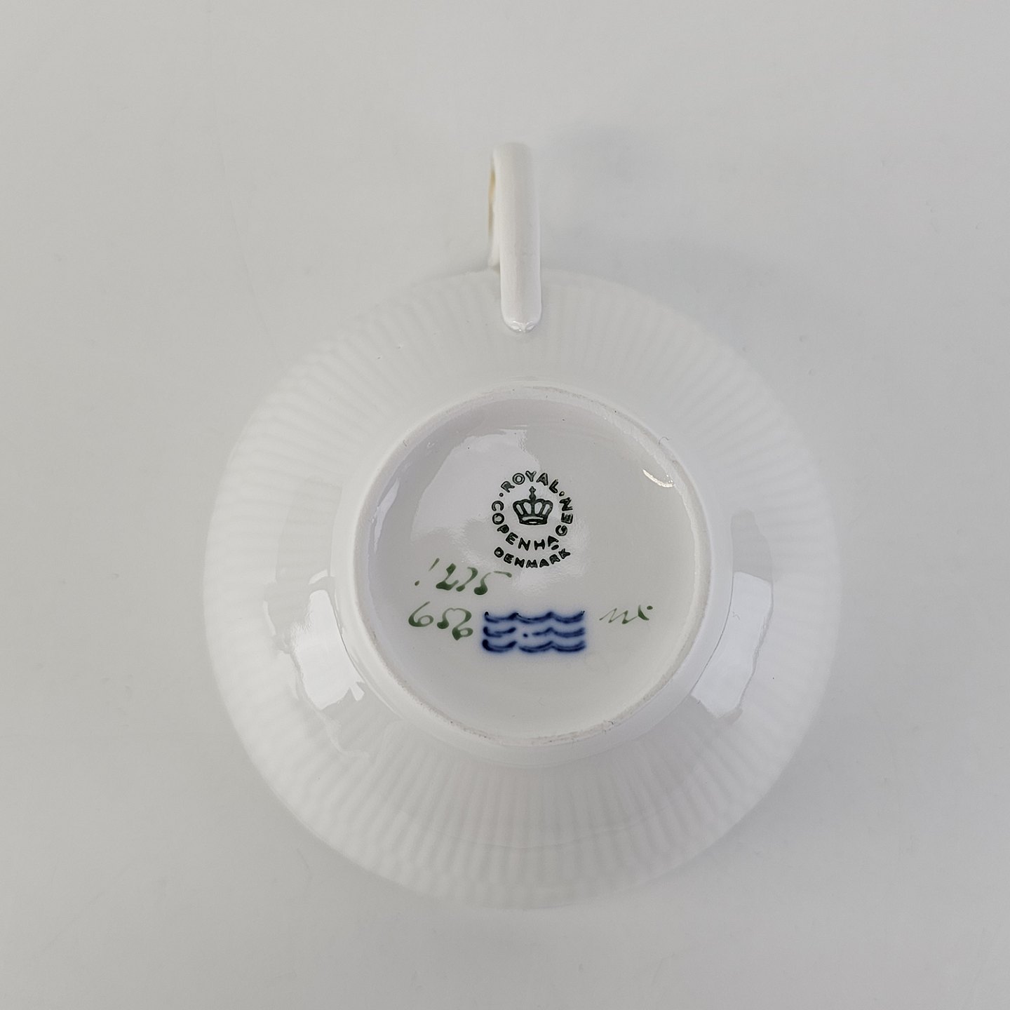 Kop med underkop i porcelæn fra stellet Hvid Halvblonde