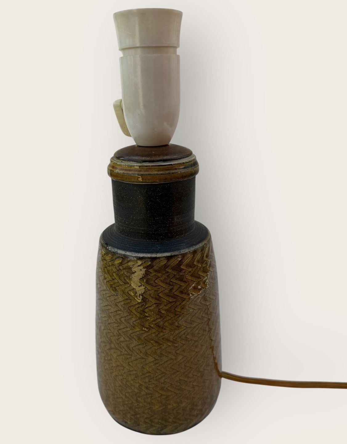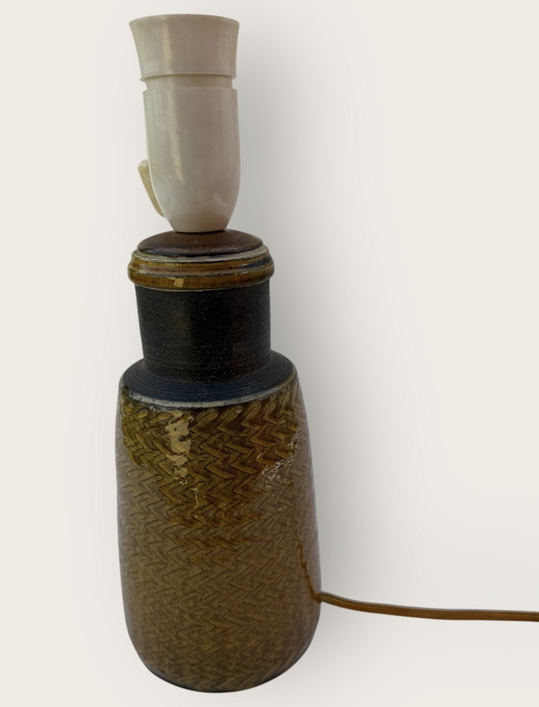 Kähler keramik, Glaseret bordlampe gul/grøn, 27,5cm høj (incl. fatning), Signeret HAK Nils *Pæn stand*
