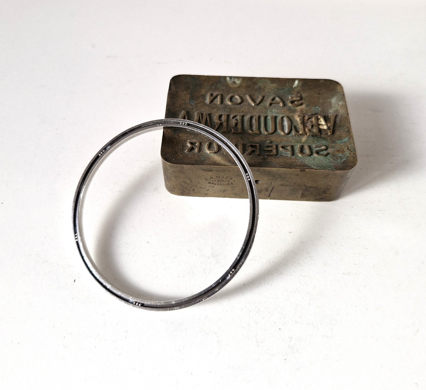 Diameter 7,3 cm. Indvendig diameter 6,5 cm. Bredde 3 mm.