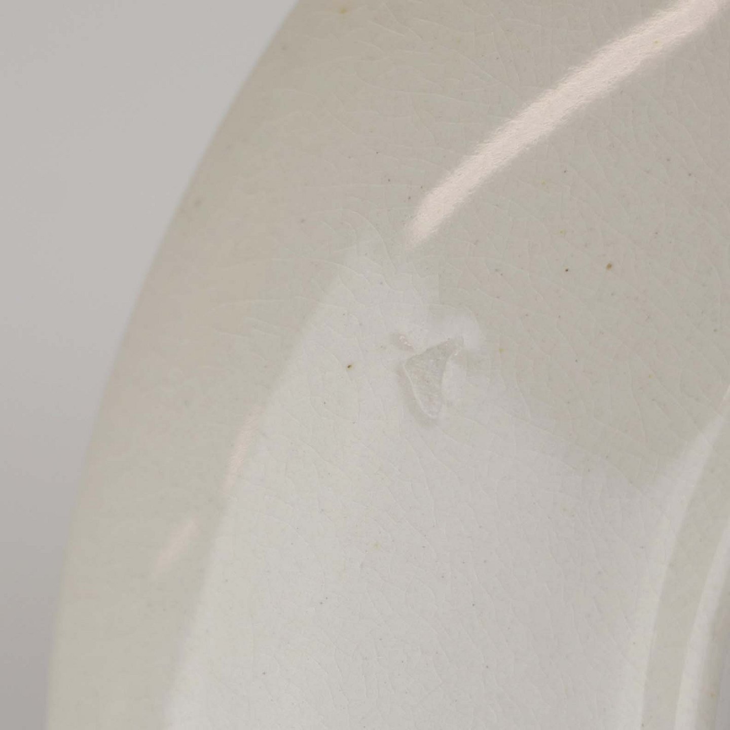 Fremstår med krakkeleringer i glasuren samt ujævnhed i fajancen på underkoppens underside.