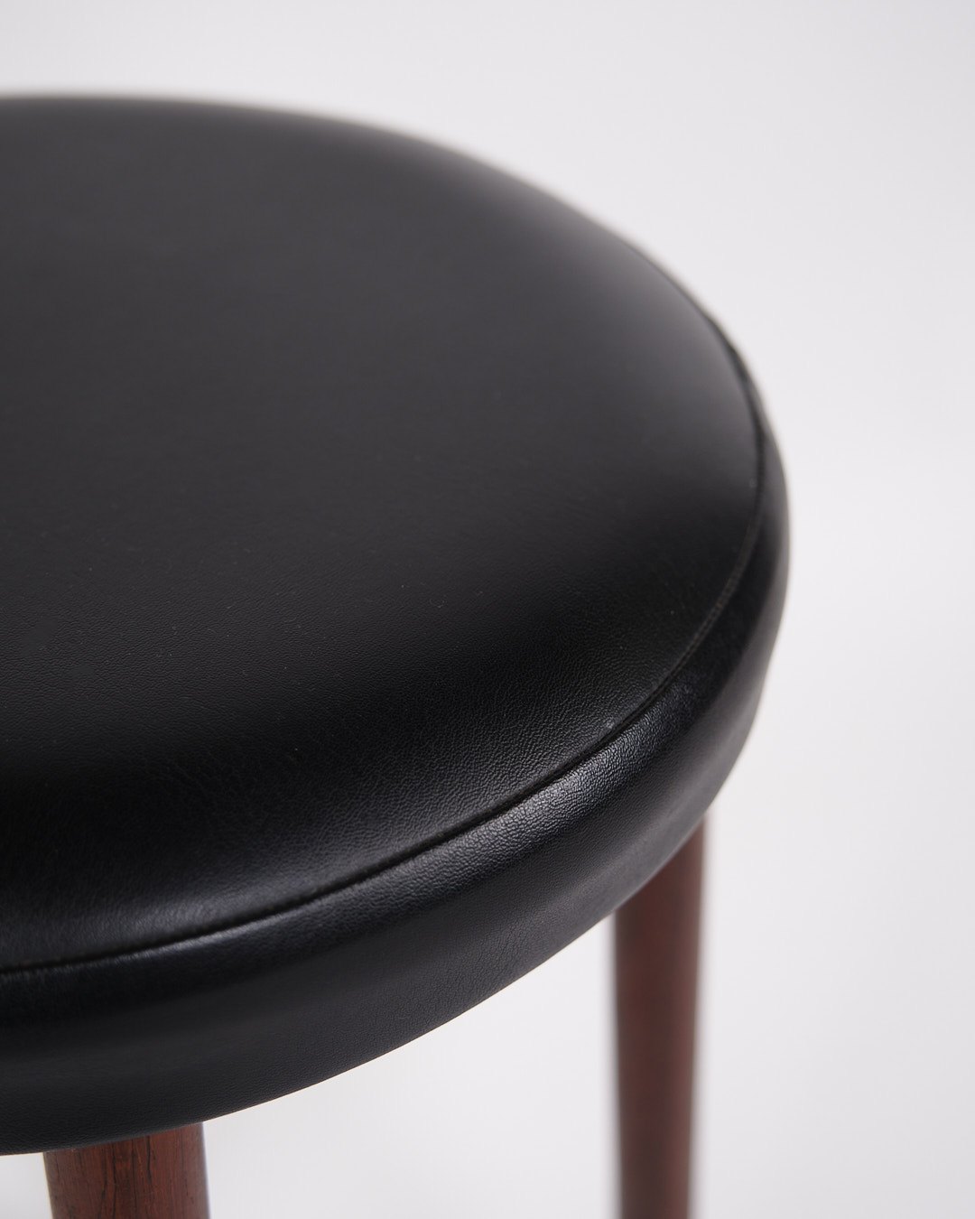 Dansk barstol fra 1970’erne. Palisander med sort lædersæde. Klassisk Dansk Design.