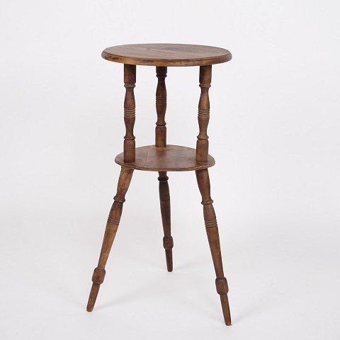 Antikt side-/blomsterbord i fyrretræ fra 1880’erne. To-plans med drejede ben.