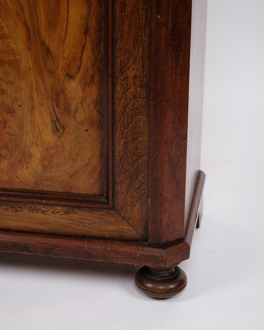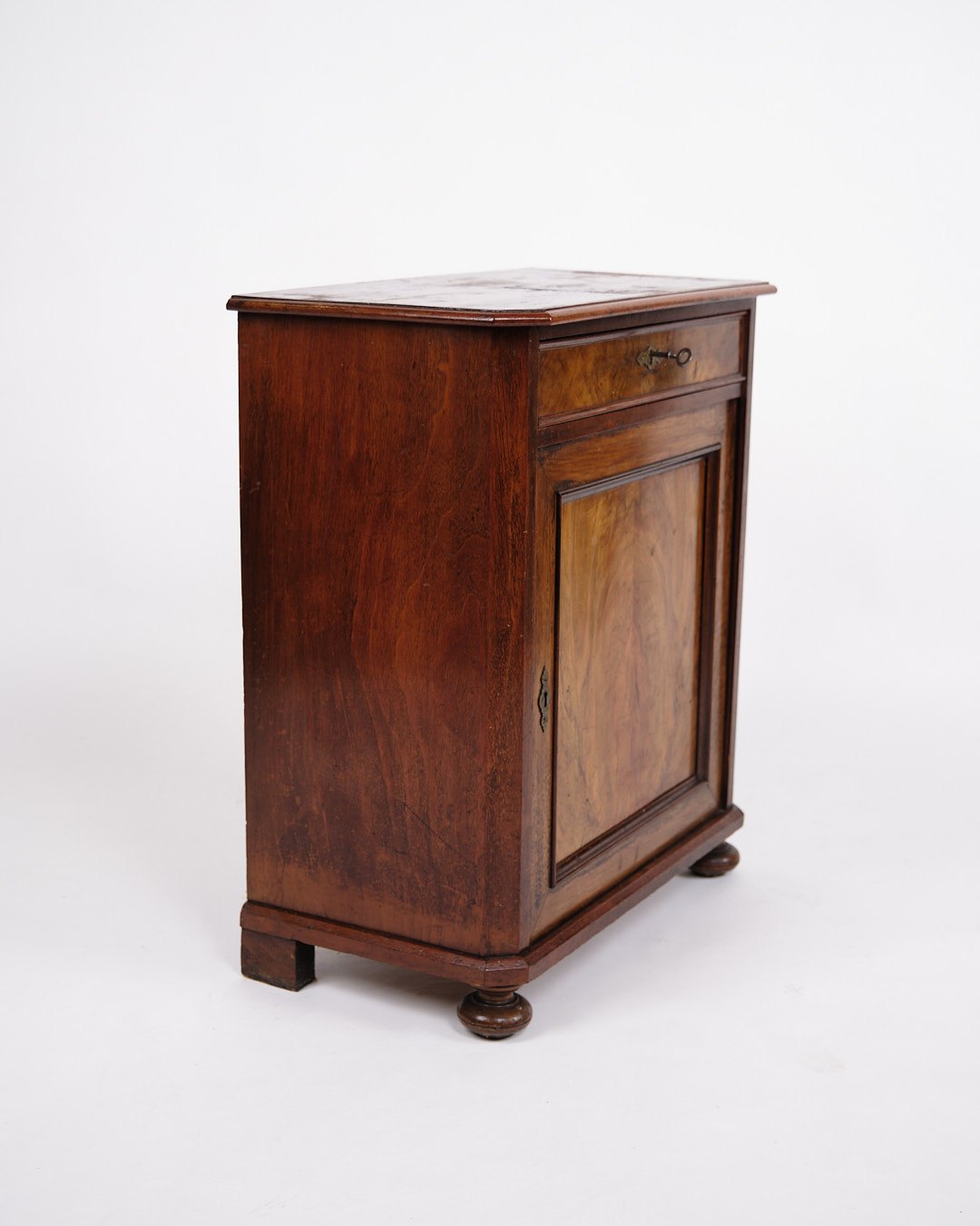 Lille Antikt Konsol/Skab - Entré Møbel - Mahogni & Nøddetræ - Runde Ben - 1880erne