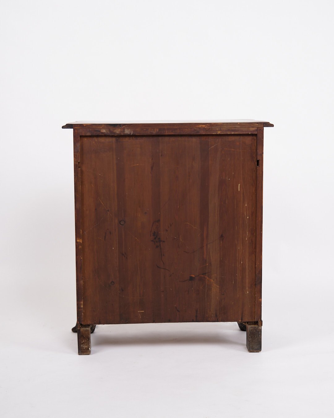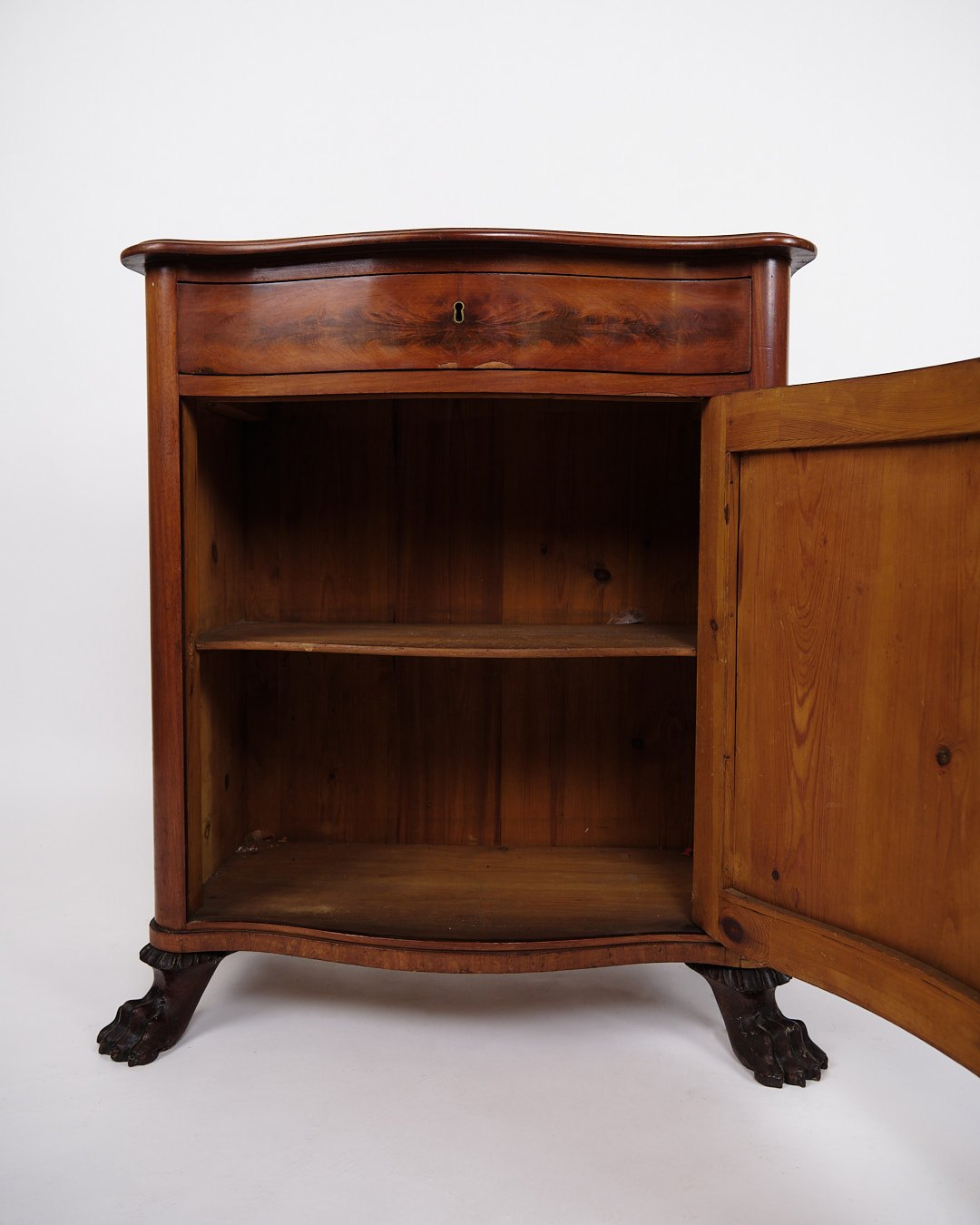 Lille konsol-/entrémøbel fra 1890’erne, udført i håndpoleret mahogni med flamme struktur. Skabet står på detaljerede løvefødder, der giver et elegant og klassisk udtryk.