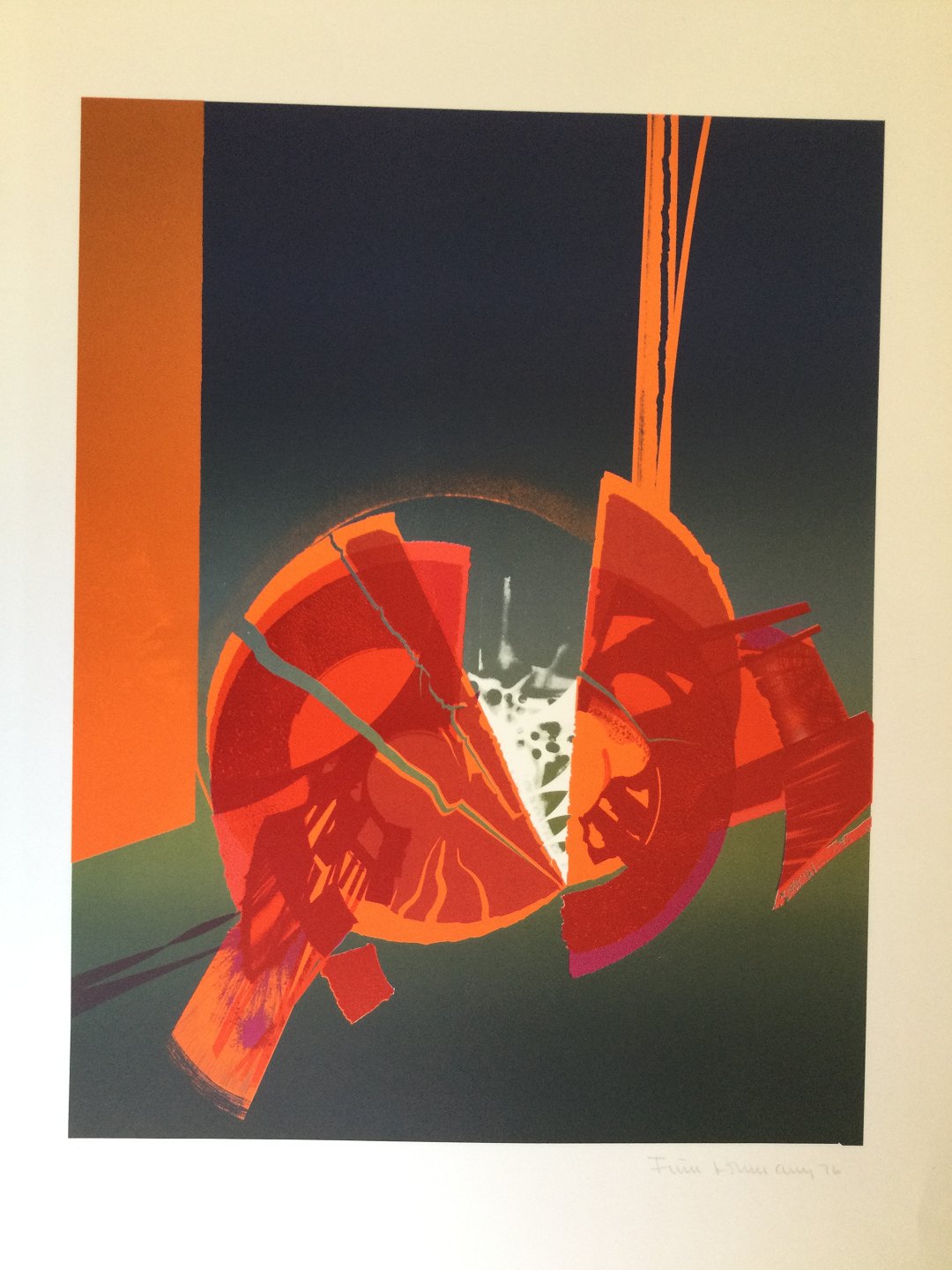 Farvelitografi af Finn Lohmann - Komposition 1976.