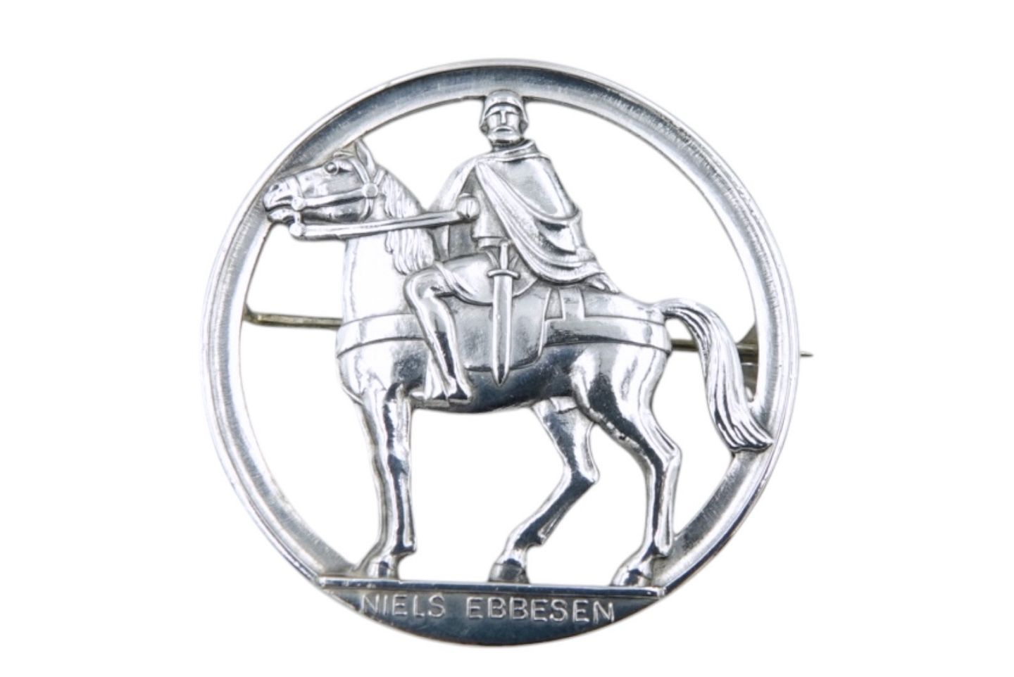 Større Niels Ebbesen broche med mand til hest