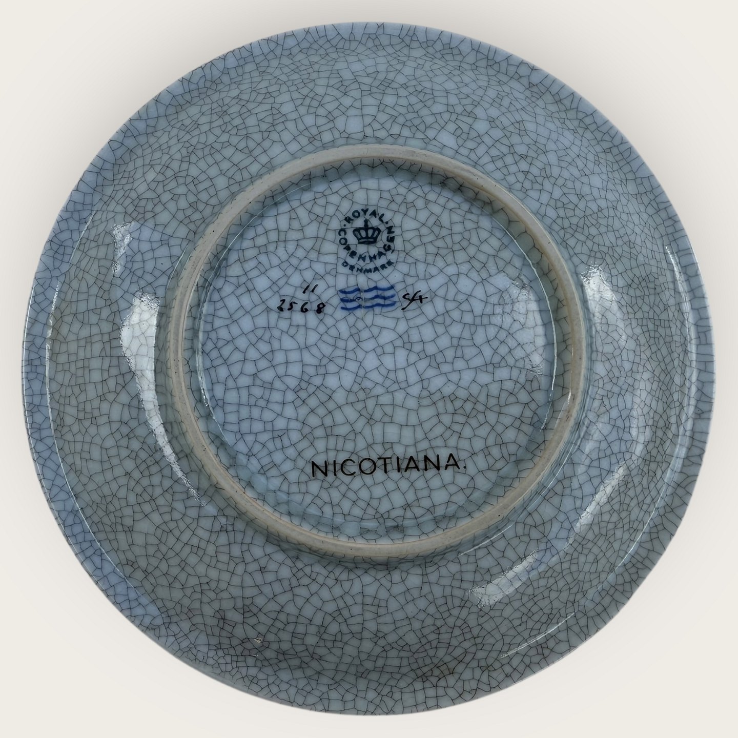 Royal Copenhagen, Nicotiana, Skål i krakkele porcelæn fra dengang tobaksplanten var en populær plante, #11/2568, 2.sortering, pæn stand, diameter 17,5cm, Krakele