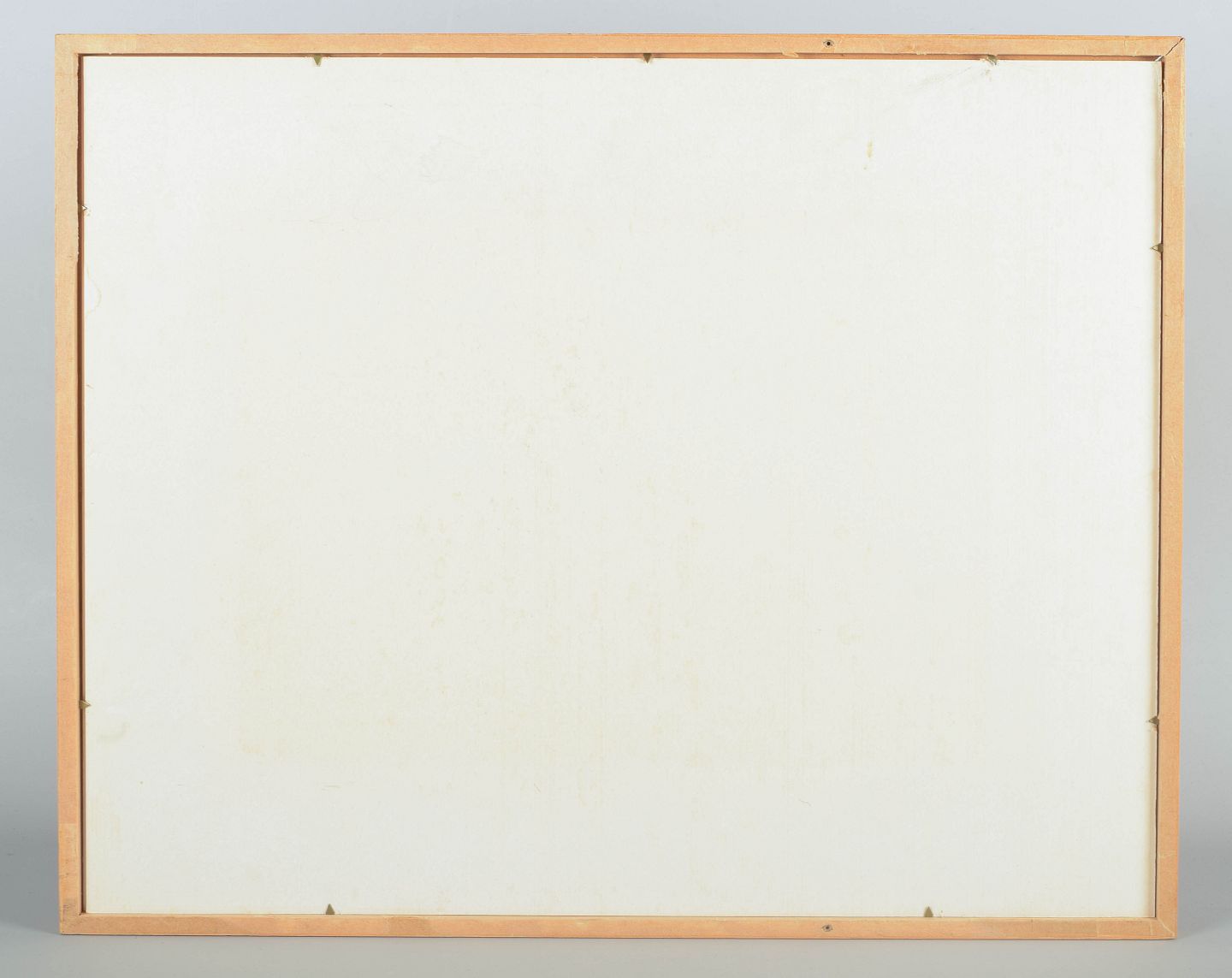 A colourful work by Swedish artist Brita af Klercker, executed in delicate yet expressive pastel strokes in green, red and yellow hues. The composition conveys a lyrical and almost musical quality, where colour fields and lines create rhythm and movement.
