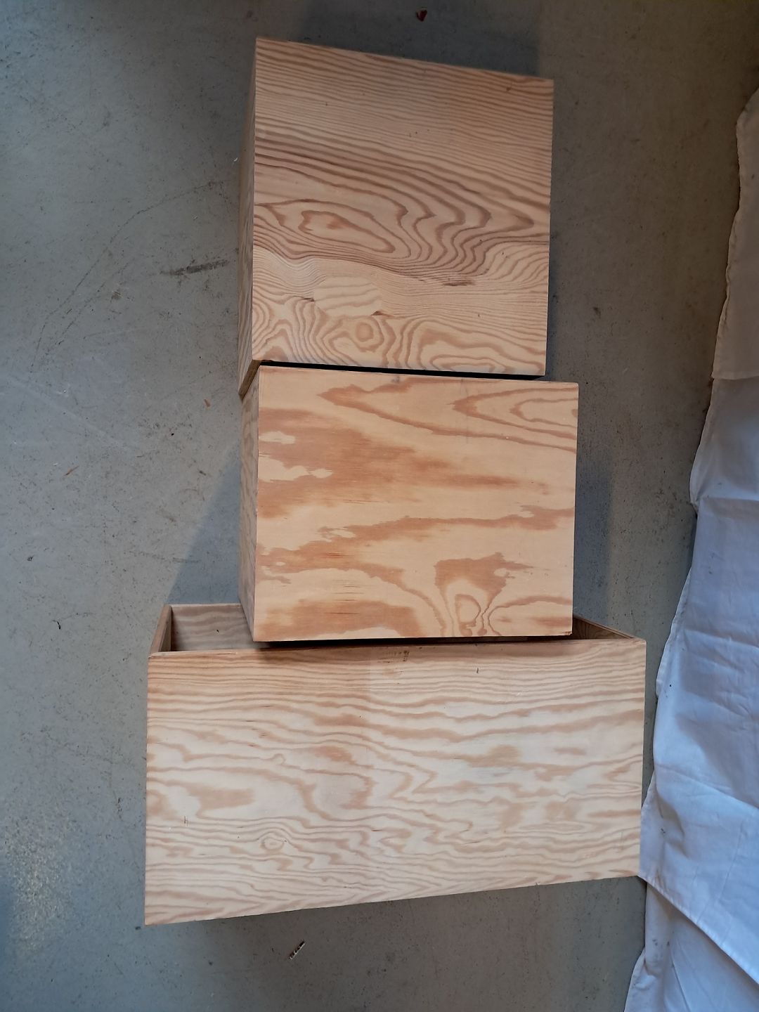 3 Reolkasser i krydsfiner, fra 2000erne.