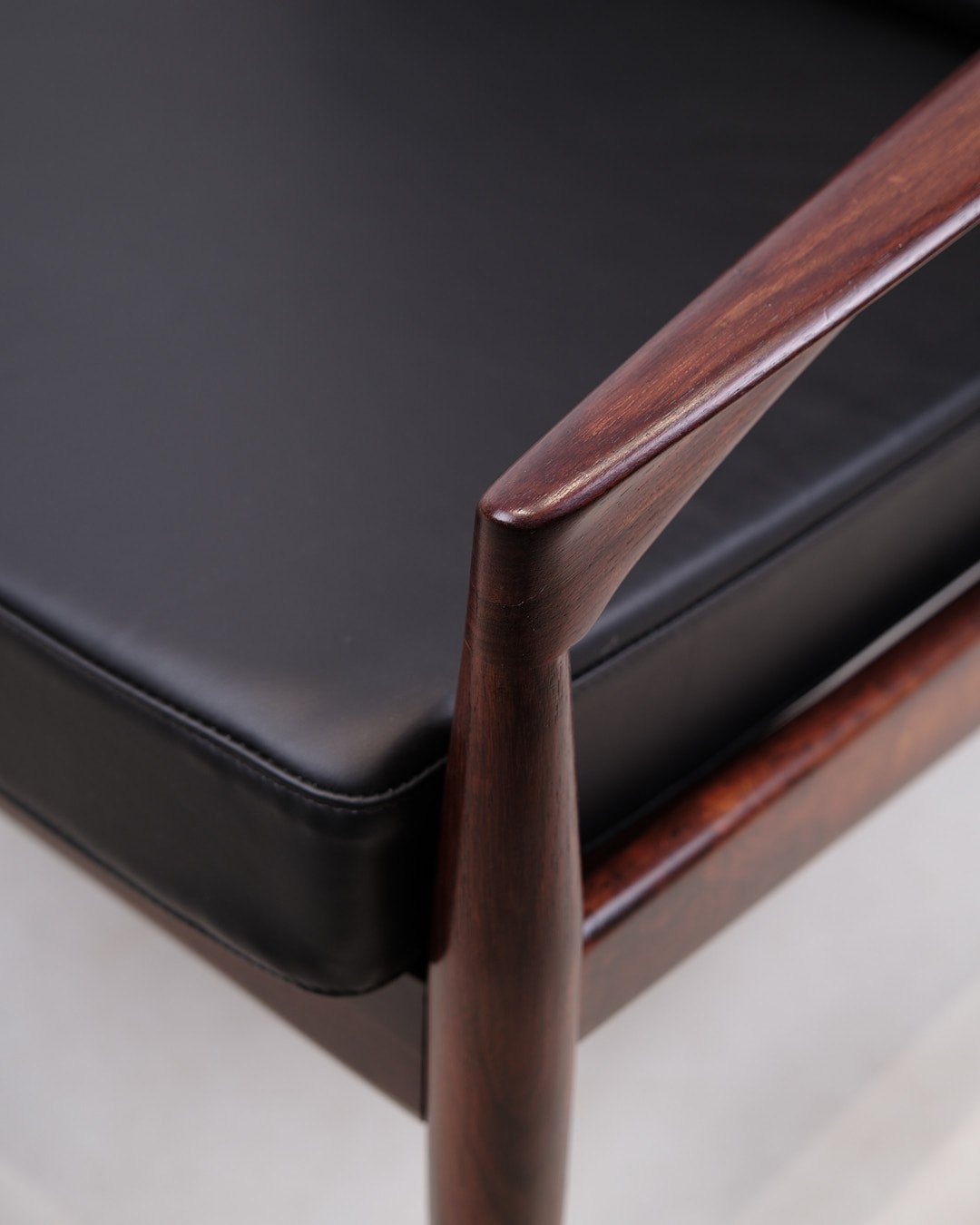Kai Kristiansen “Papirknivstolen”, model 121. Palisander og sort læder. Produceret af Magnus Olesen, 1950’erne.