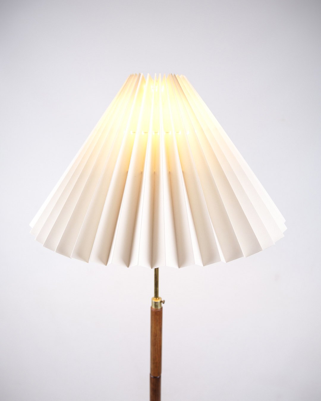 Dansk gulvlampe fra 1960’erne i teaktræ med plisseret skærm. Klassisk design.