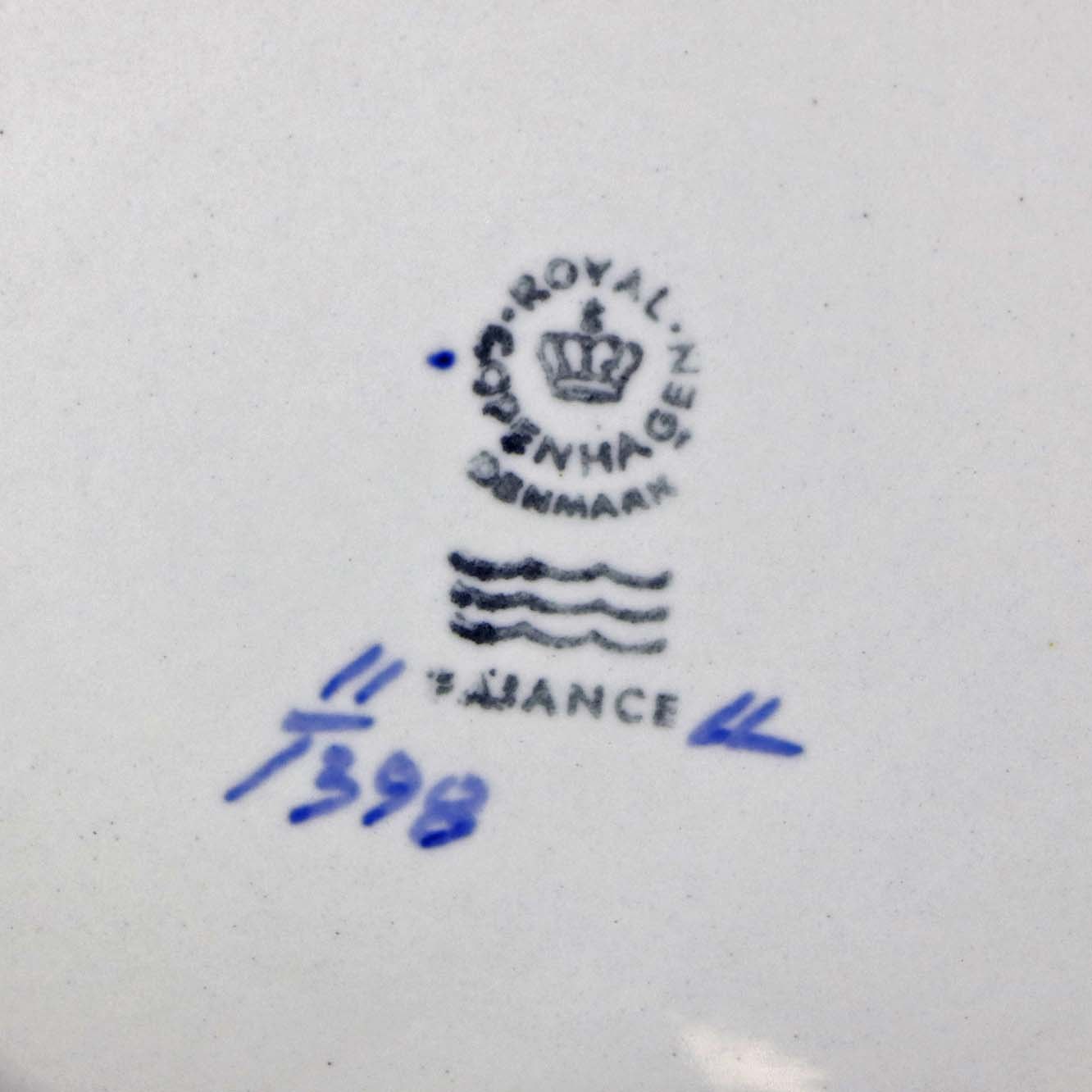 Halvmåneformet kagefad i fajance fra stellet Blå Tranquebar. Nr. 11/1115