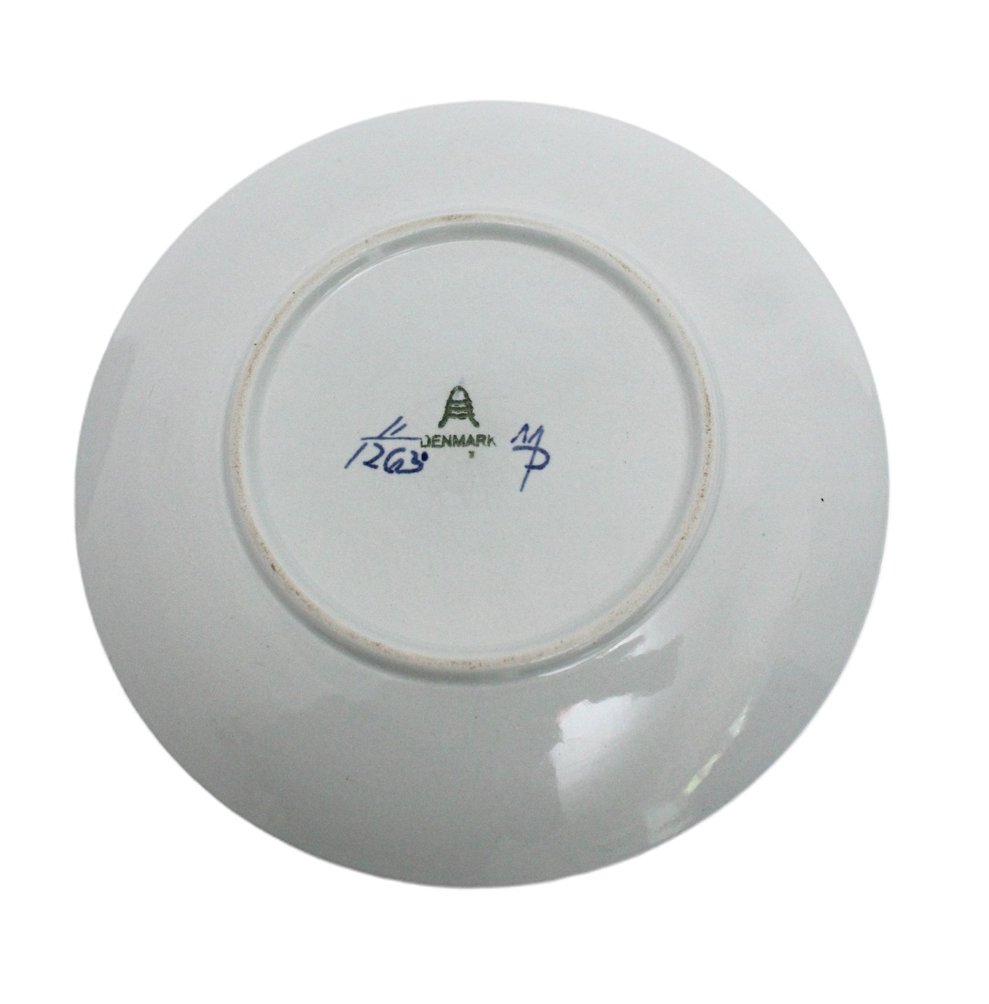 Aluminia, Tranquebar lyseblå fajance med mørkeblå tulipan og flettet bort designet af Christian Joachim. Produceret fra 1914 til 1969 på Aluminiafabrikken, derefter overgik det til Royal Copenhagen.