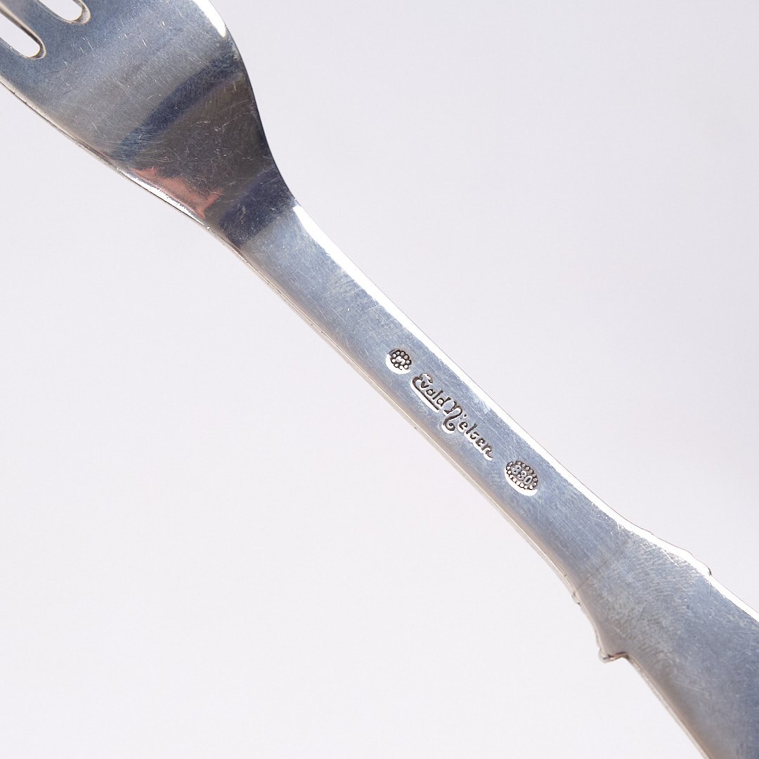 Gaffel med Konge-mønster af Evald Nielsen. Sølv 830s, stemplet.