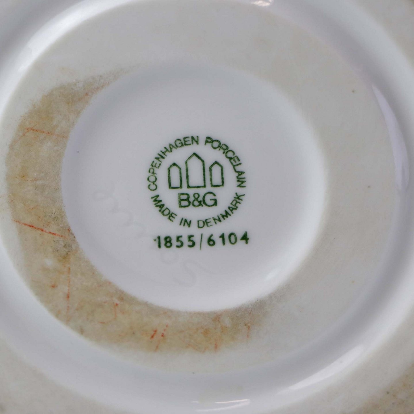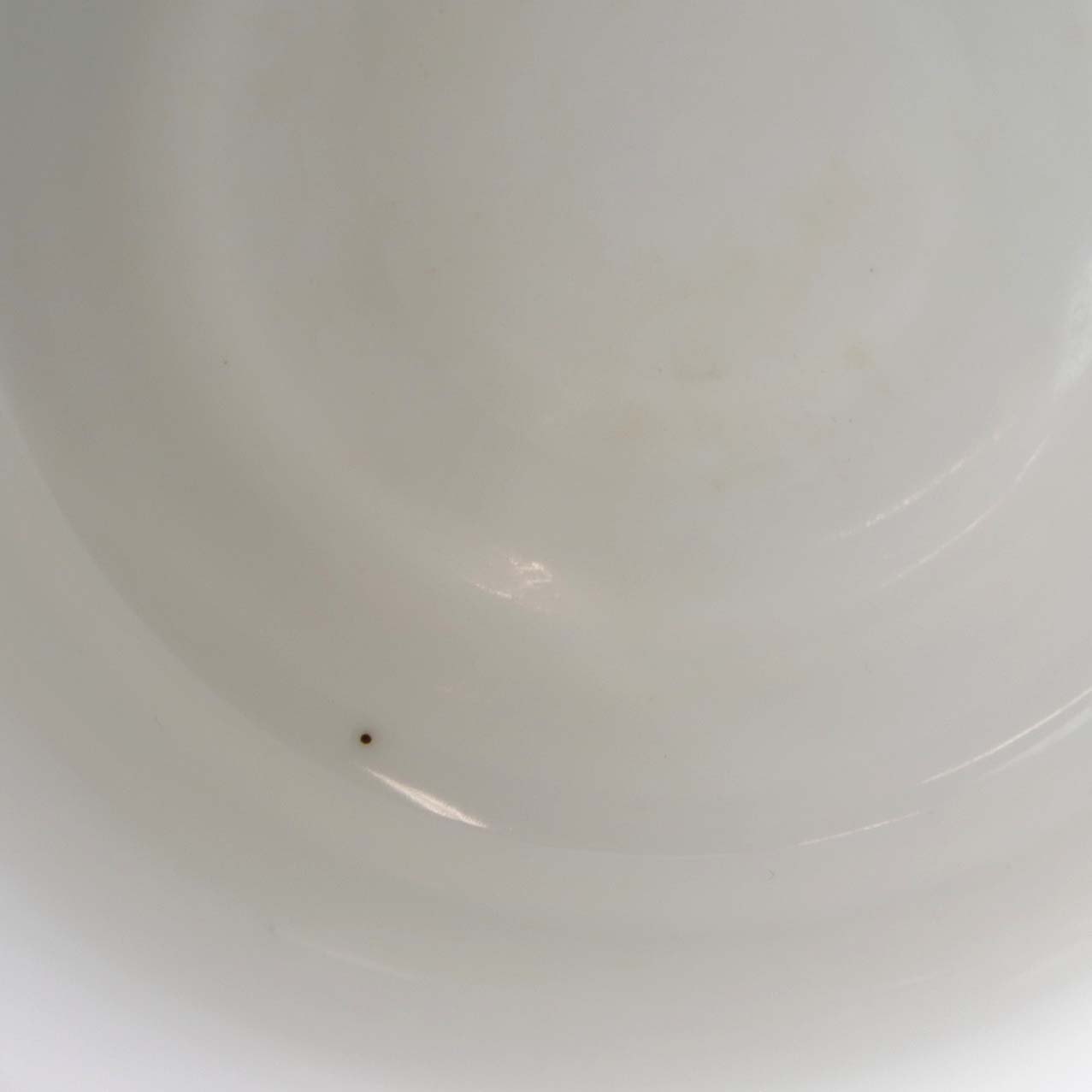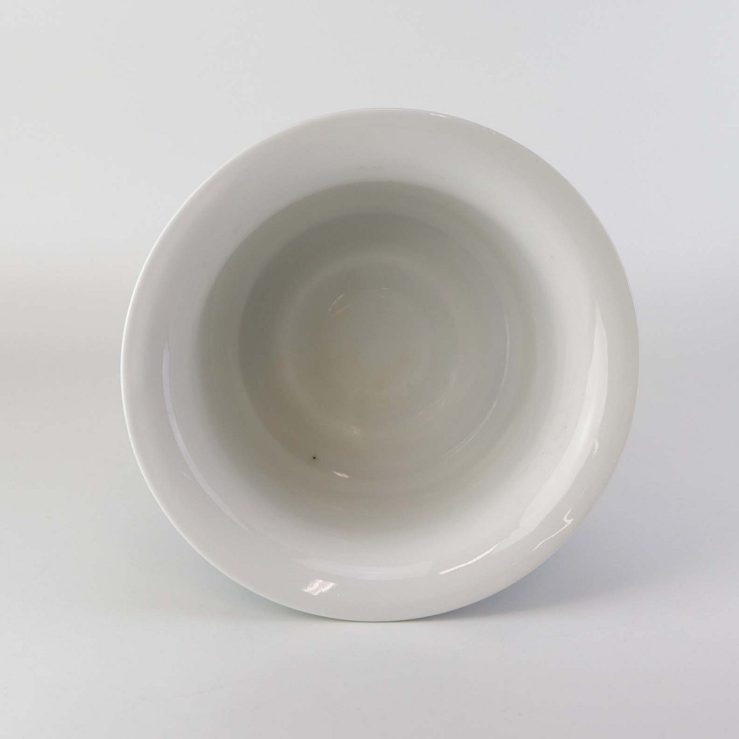 Urtepotteskjuler i glat hvidt porcelæn dekoreret med blå striber. Nr. 1855/6104