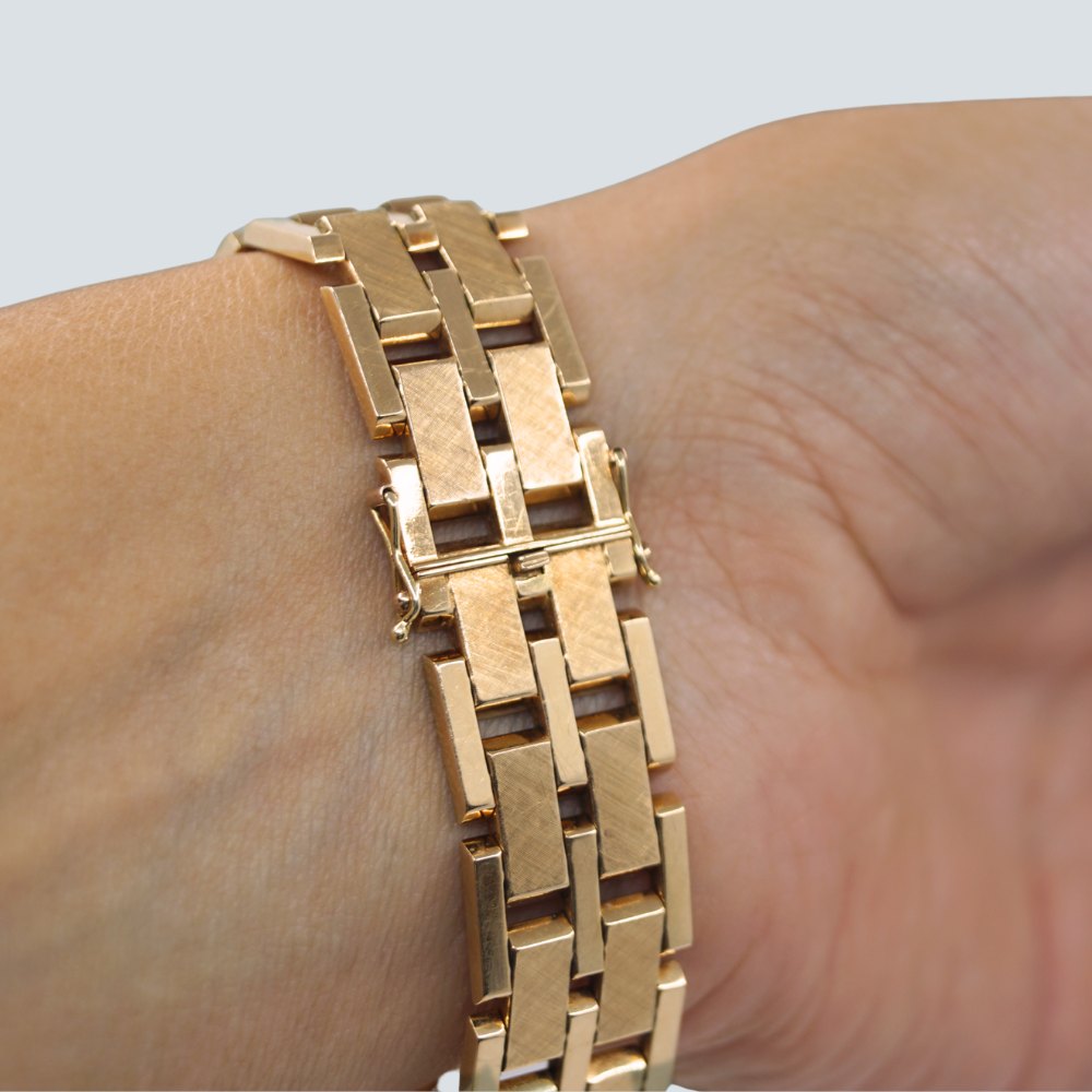 Blok armbånd af 14 kt. guld, delvist satineret.