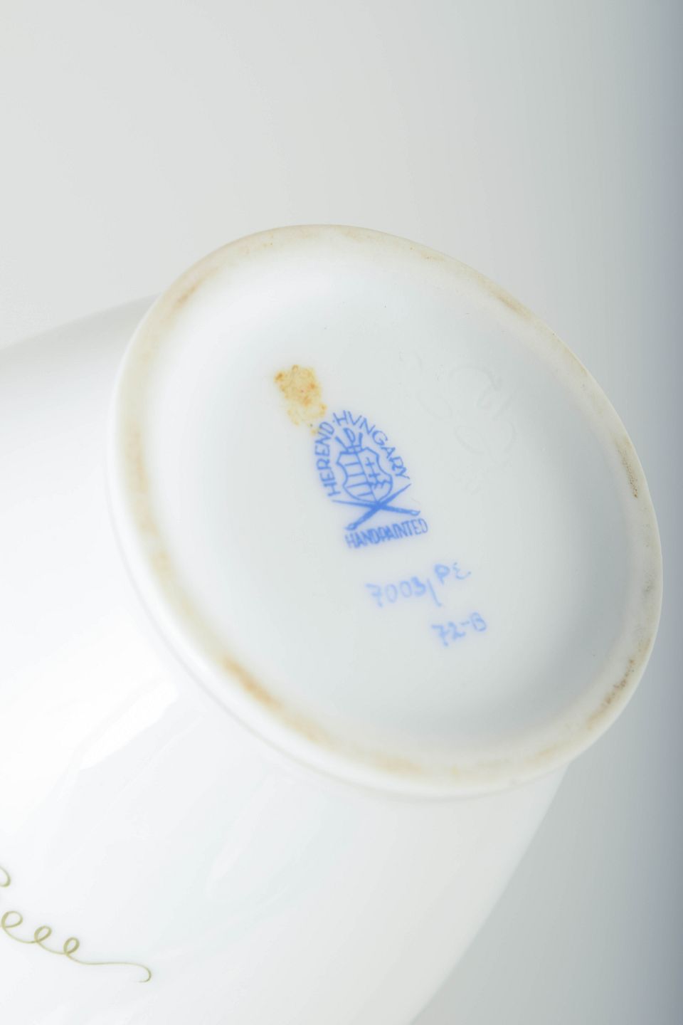 Herend-fabrikken blev grundlagt i 1826 og er i dag internationalt anerkendt for sit udsøgte porcelæn, ofte med håndmalede blomstermotiver, dyrefigurer og klassiske dekorationer. I det 20. århundrede videreførte Herend sin tradition for håndværksmæssig kvalitet og kunstnerisk finesse, hvilket har gjort fabrikken til en af Europas førende porcelænsproducenter.