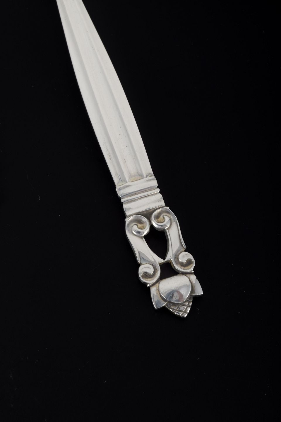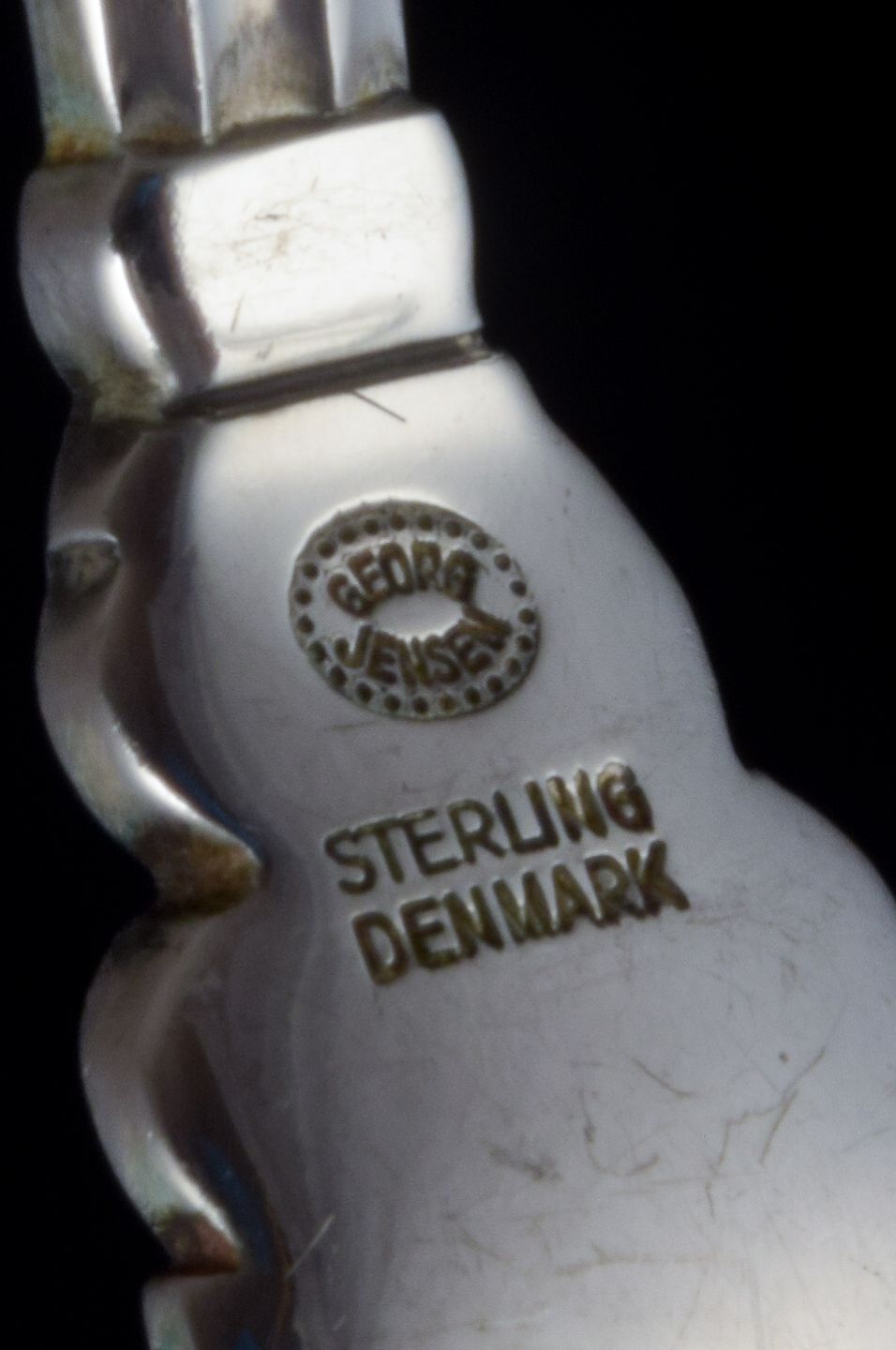 Sæt bestående af 5 dessertskeer i det klassiske “Konge / Acorn”-mønster, designet af Johan Rohde i 1915. Elegant udført med skaft dekoreret af akantusblad og agernmotiv.