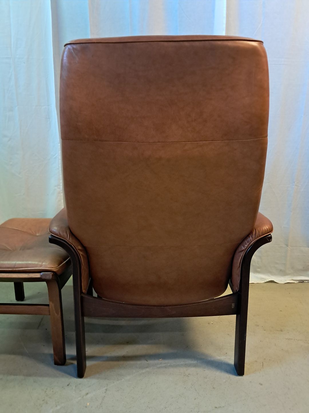 Læder lænestol med skammel, fra 1990erne.