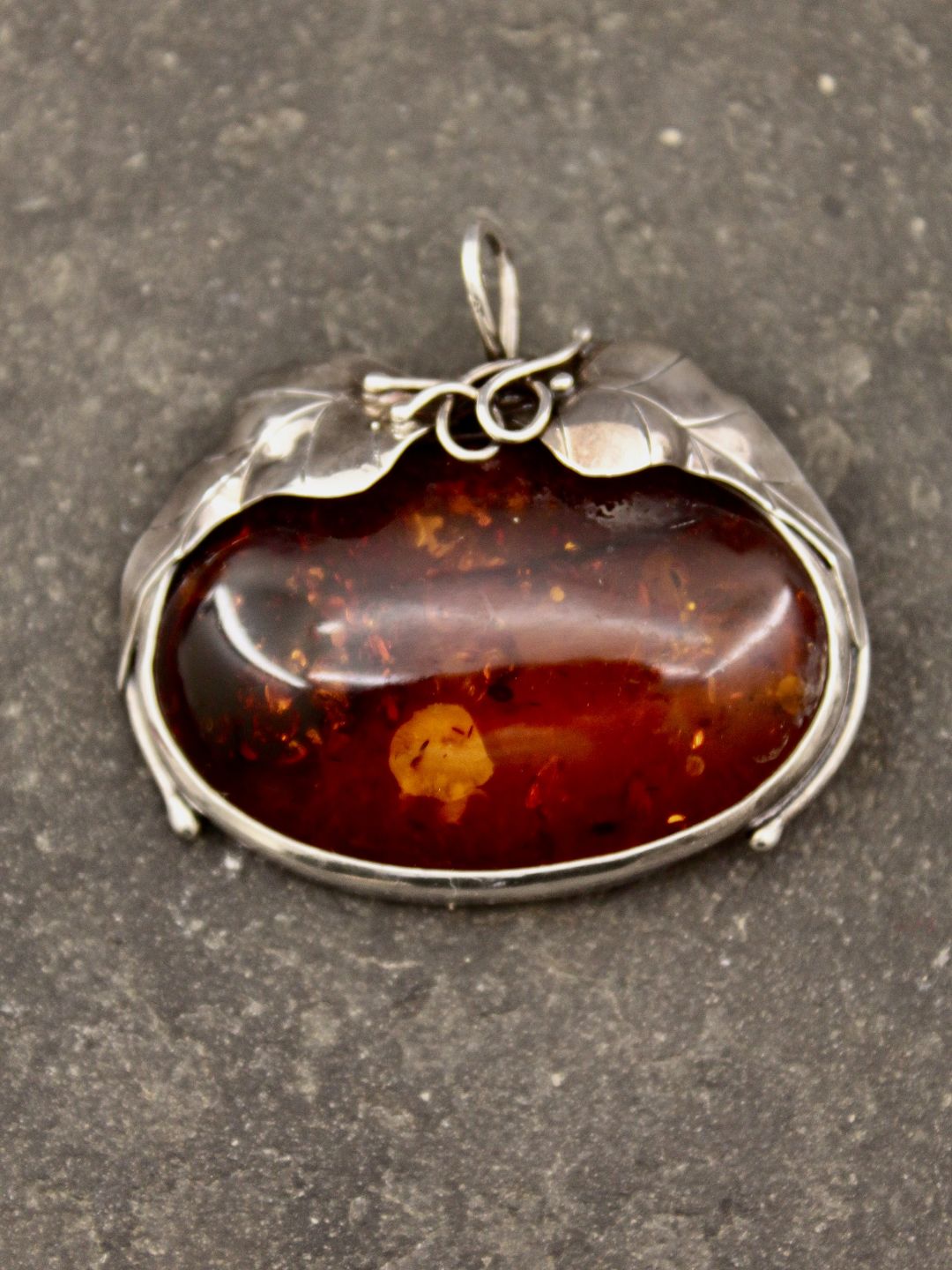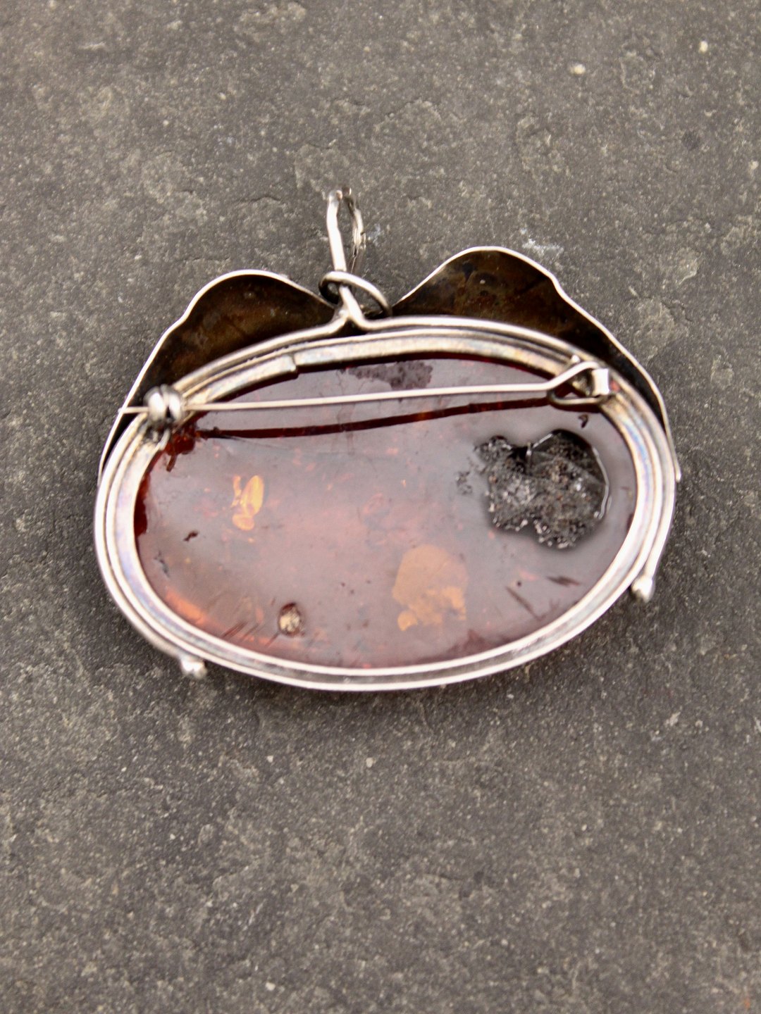 Rav vedhæng/broche monteret i sterling sølv 5,1 x 3,8 cm. emne nr. 622954