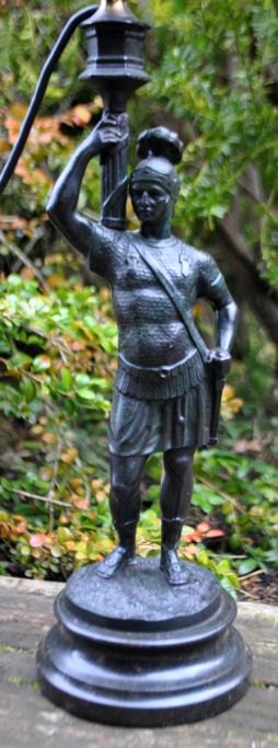 Table lamp in the shape of a standing Roman soldier, 19th century Germany.
