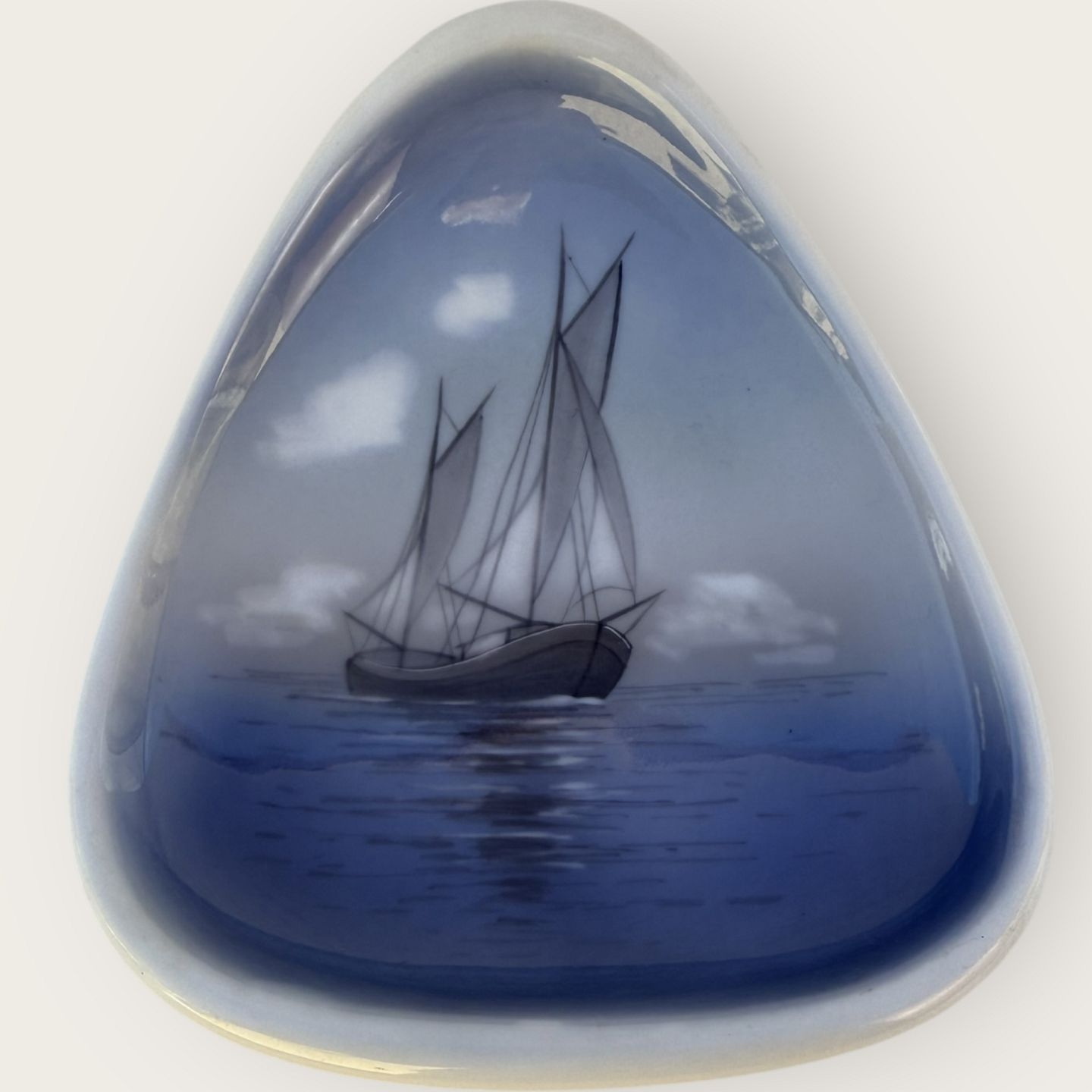 Lyngby porcelæn, skål med sejlskib 18x15,5cm, ustemplet, # 111-2 *pæn stand*