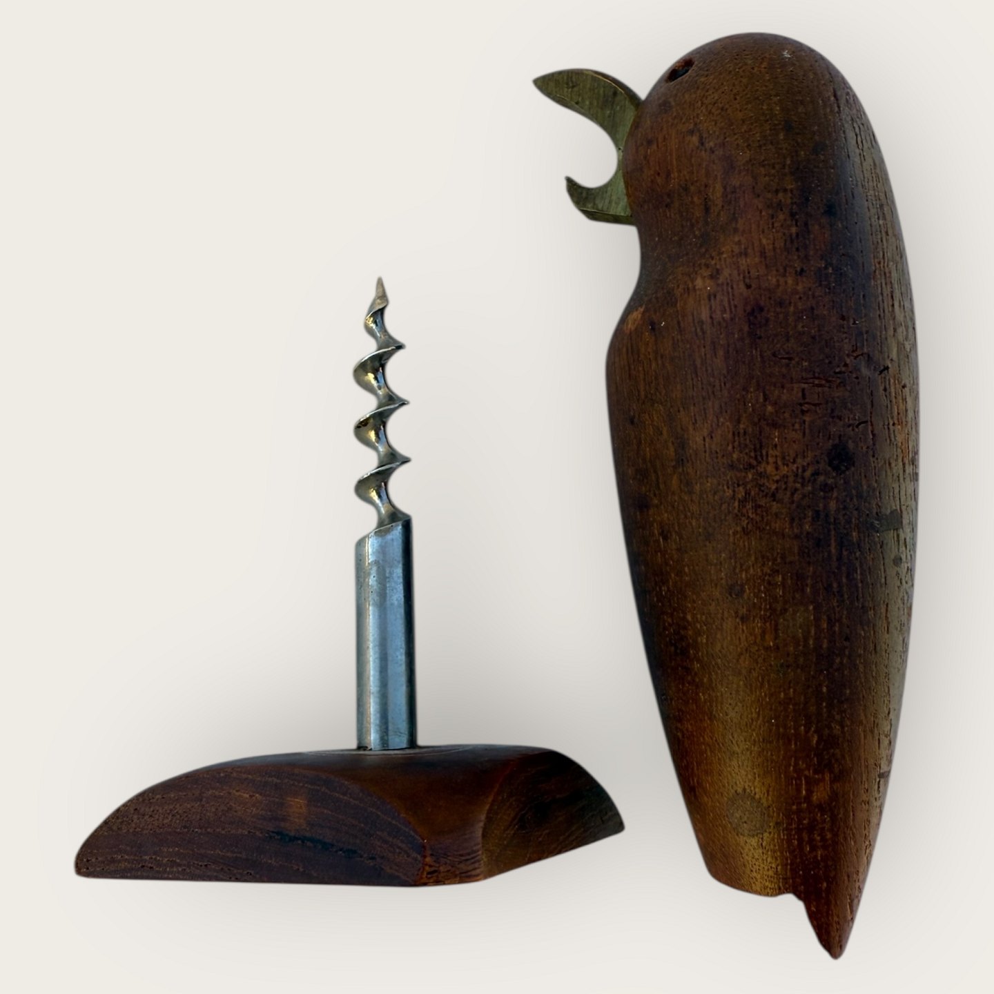 Bottle opener and corkscrew in teak wood from the 1960s, good condition, Dimensions: 12.5x7.5cm