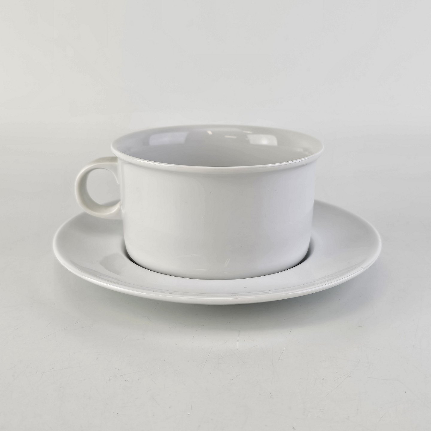 Kaffekop med underkop i glat hvidt porcelæn fra stellet Hvid Domino
