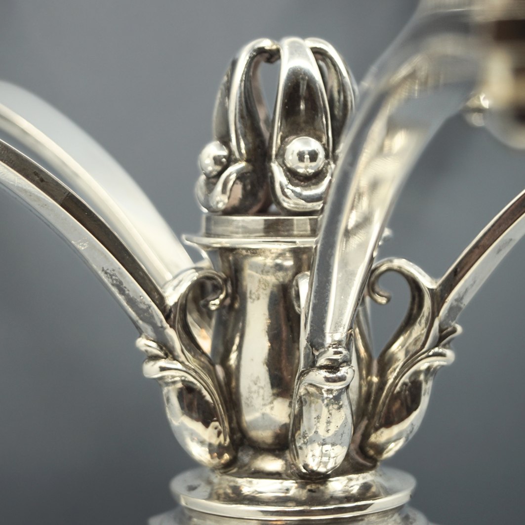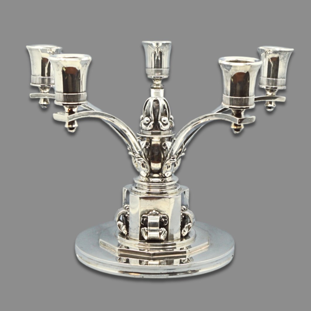 Evald Nielsen; Fem-armet lysestage i sølv.