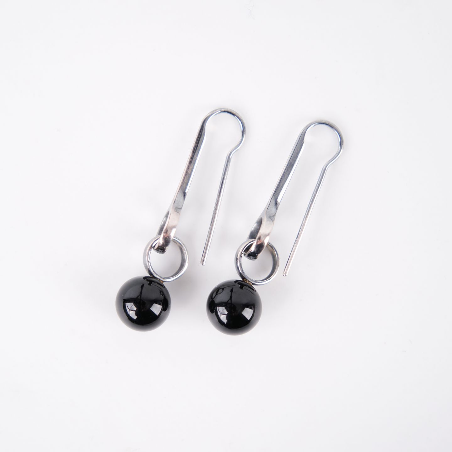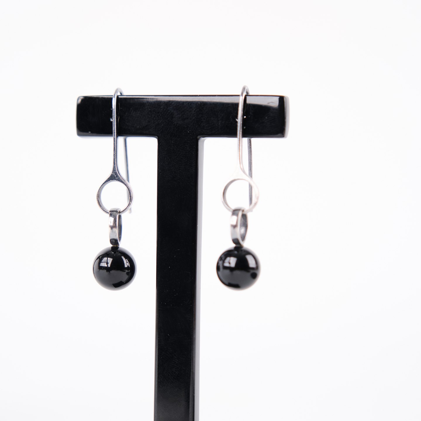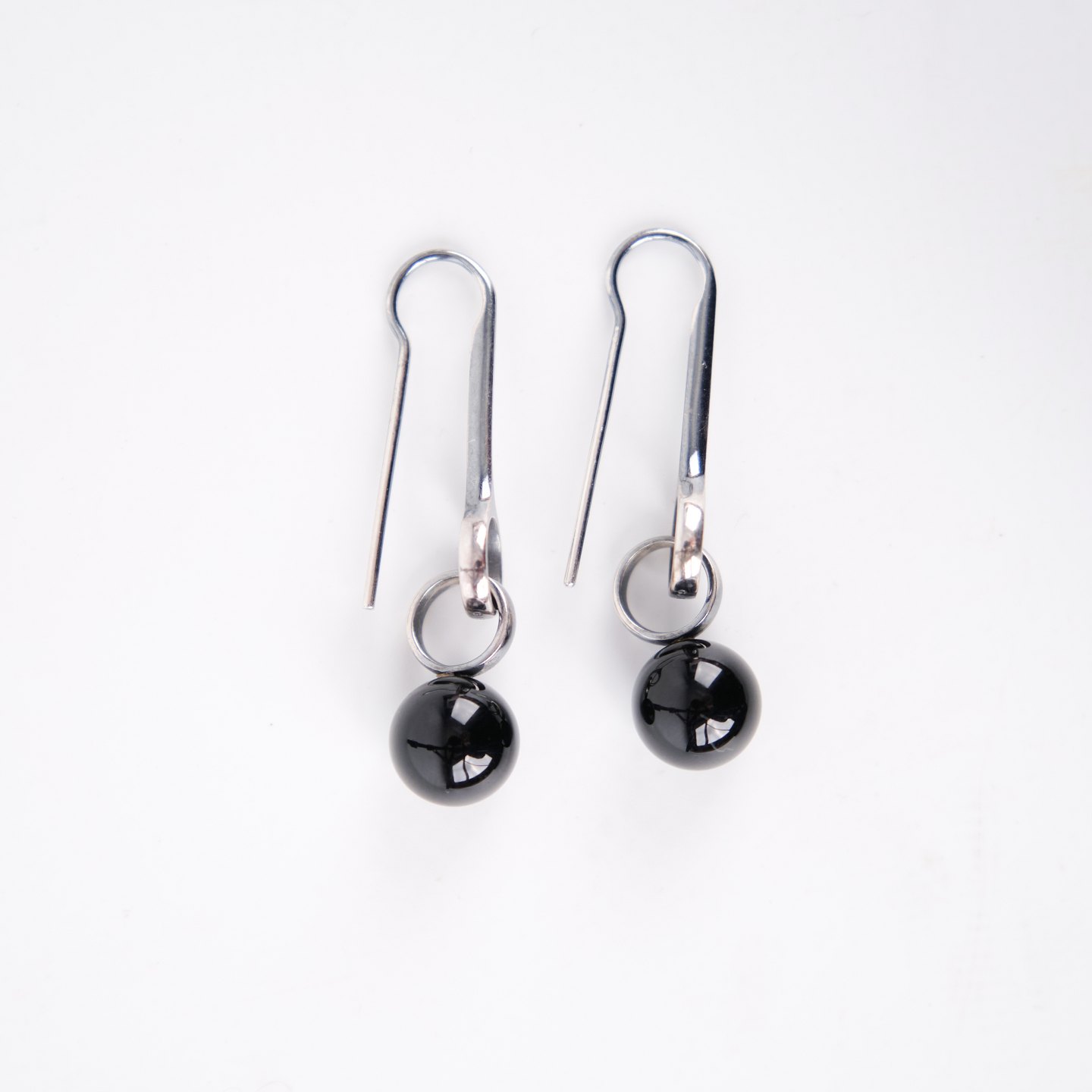 Ørehængere i sterling sølv 925S, stemplet GJ 925 S, designet af Regitze Overgaard for Georg Jensen. Udført som elegante sphere-earrings med sort agat, kendetegnet ved enkelhed, rene linjer og tidløst dansk smykkedesign. Et klassisk sæt i kvalitetsmaterialer.