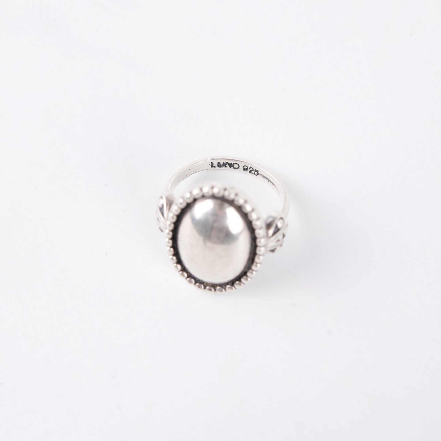 Ring i sterling sølv, stemplet Lund 925. Et enkelt og klassisk smykke i solid sølvkvalitet, velegnet til daglig brug eller som del af en smykkesamling. Fremstår i flot stand og i ringstørrelse 56.