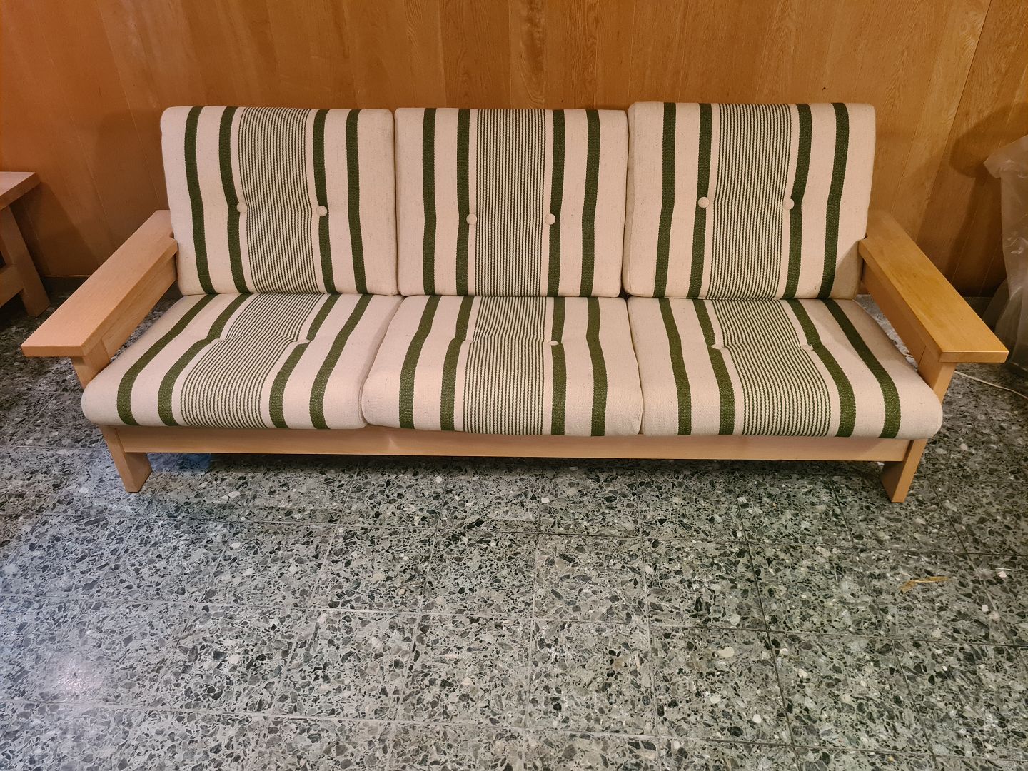 3 personers sofa fra 1970´erne i eg og med løse hynder. Formgivet hos Laboremus i Viborg. Fremstår pæn og velholdt uden de store brugsspor.