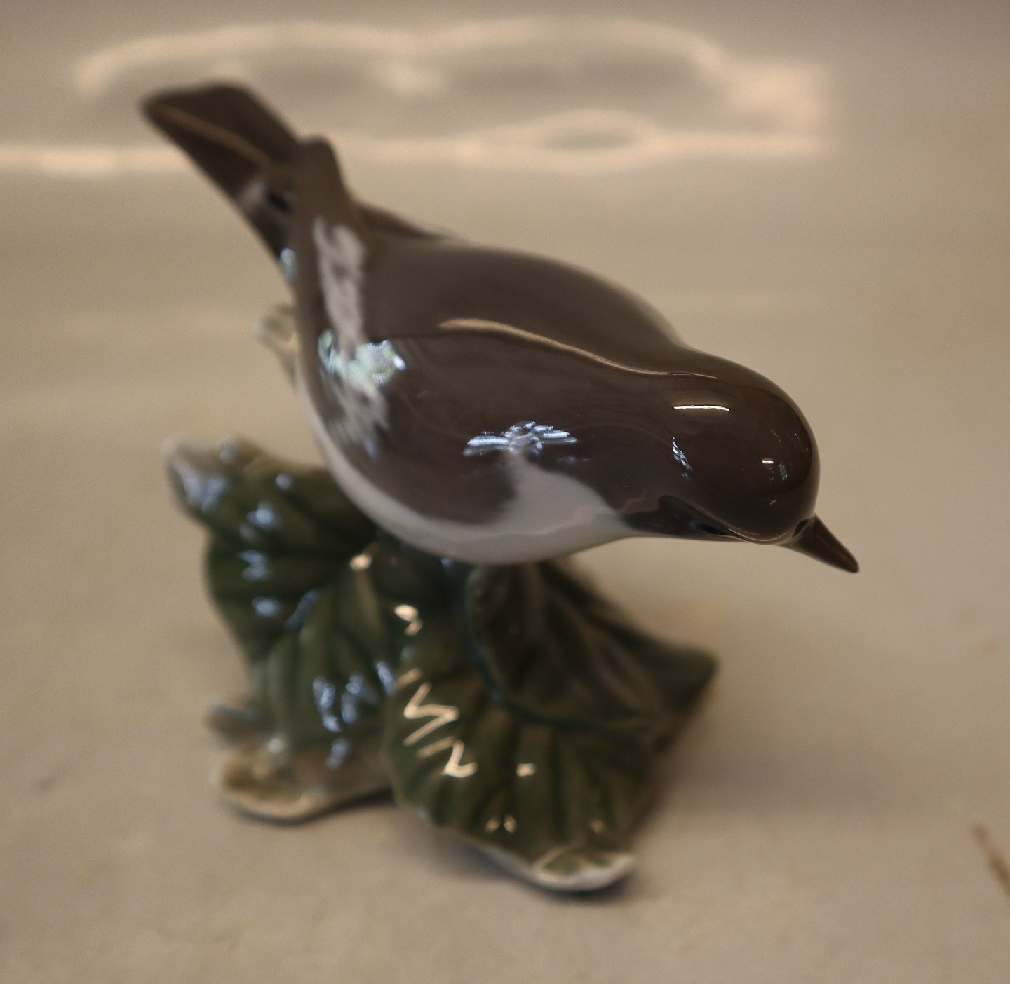 2144 Kgl. Fluesnapper 8 x 13 cm Platten Hallermundt 1920 Fuglefigur i Porcelæn fra Royal Copenhagen I hel og fin stand