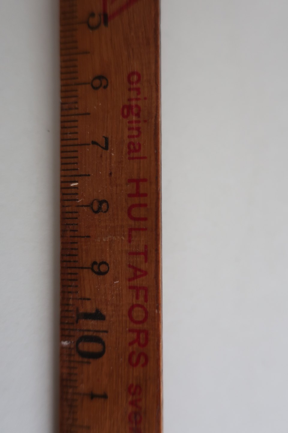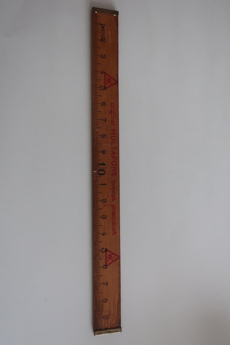 Lille lineal med reklameteksten "Original Hultafors Svensk præcision" samt logo